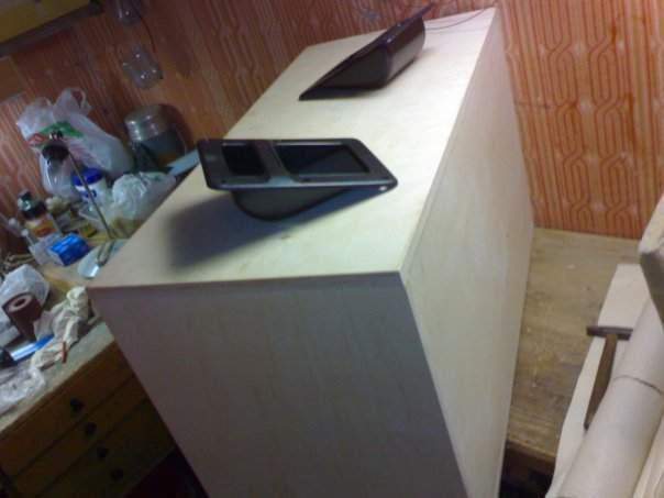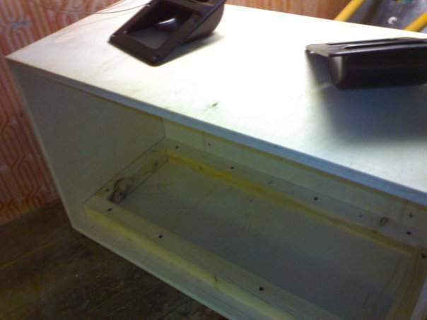 Размеры кабинета срисовал с yerasov bull 2 12. ну правда не обошлось без модернизации. Фанеру купил 18 мм проив 15 мм в Булл. И незная технологию ерасова, сделал конструкцию "в нахлест". т.е. боковинки стоят на нижней доске и крышка лежит на боковинках. как блин табуретка)