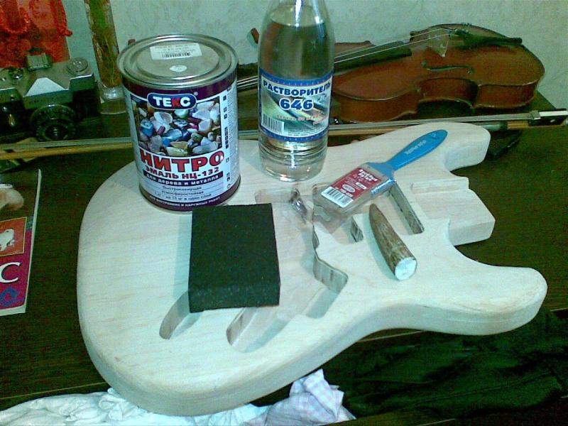 Да простят меня все, ибо творю я неведомо что, но загрунтую деку тем же нц лаком разведенным, зашлифую всё это безобразие, затем покрою парой слоев белой нитроэмали, шлифану, ну и финиш нц лаком.