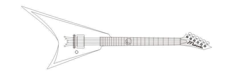 Как уже было упомянуто раньше: начинаю следующий инструмент, а именно нечто отдаленно напоминающее именную модель Alexi Laiho. Гриф будет не переклеенный из 3ёх кусков, а цельный. По бокам ольха. Чертежи подогнаны под имеющееся дерево, "рога" слегка ужаты, форма головы слегка отличаются, но слегка