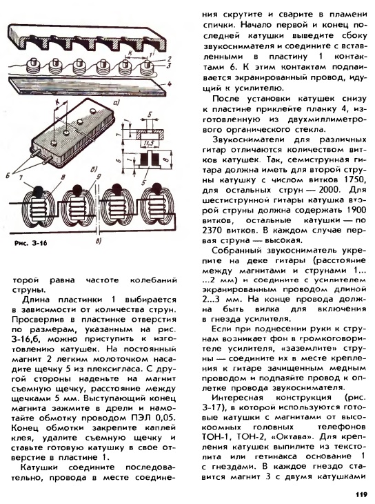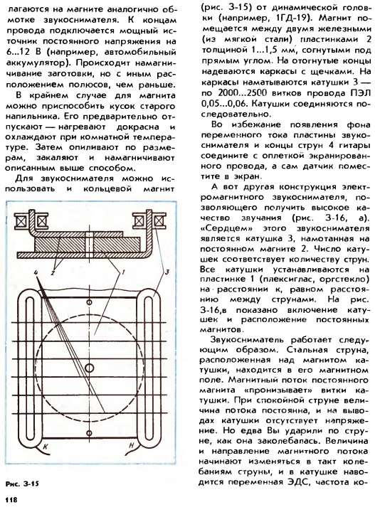 Как только не извращались наши старшие товарищи в эпоху тотального дефицита. На днях посмотрел пару документальных фильмов про советские времена и молодёжные субкультуры. В числе прочего, там рассказывалось о том, что в "Юном технике" была опубликована статья некого Б.С. Иванова, в которой рассказывалось, как можно изготовить самостоятельно звукосниматель для гитары, и из пяти предложенных конструкций, три использовали в своей основе телефонные капсюли, и уже через неделю после выхода журнала по всей стране на половине таксофонов страны были срезаны телефонные трубки. К сожалению, оригинального журнала с этой статьёй я не нашёл, но нашёл книгу Б.С. Иванова "Энциклопедия начинающего радиолюбителя", где собрано большинство его публикаций из ЮТ, в том числе и вышеуказанная статья. Это звездец, товарищи, на чём людям приходилось играть