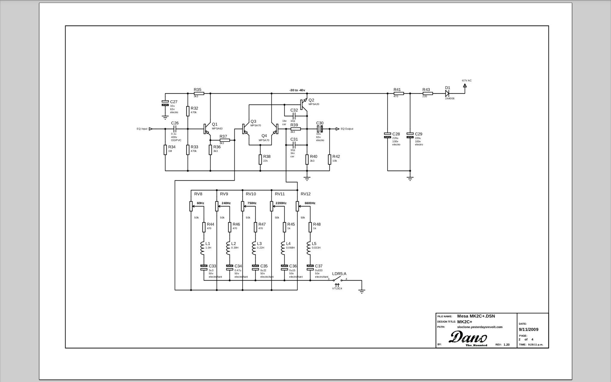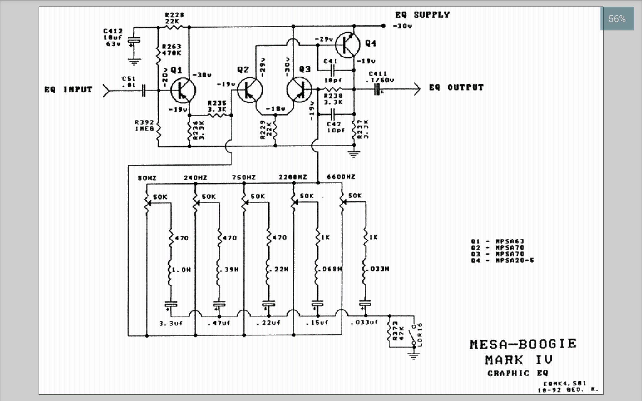 surfin bird, чтобы эквалайзер не скрежетал на пиках сигнала, надо чтобы на эмиттере Q1 и на коллекторе Q2 было примерно пол-питания на С28.