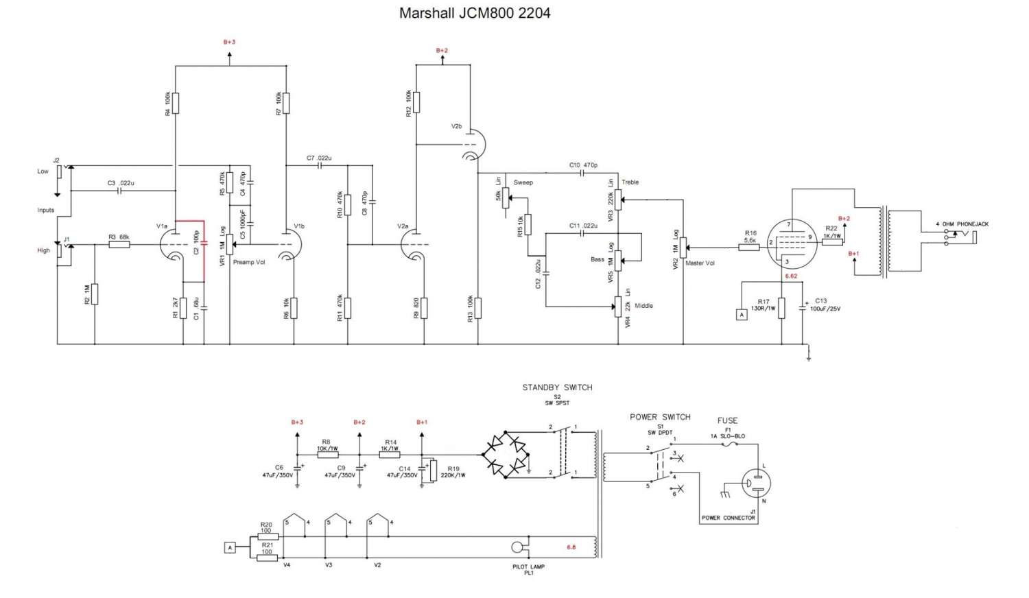 замерь питание в цепи каждой лампы (те, не на аноде, а на анодном резисторе, с др стороны, не где он в анод идет) после удара (когда тихо)