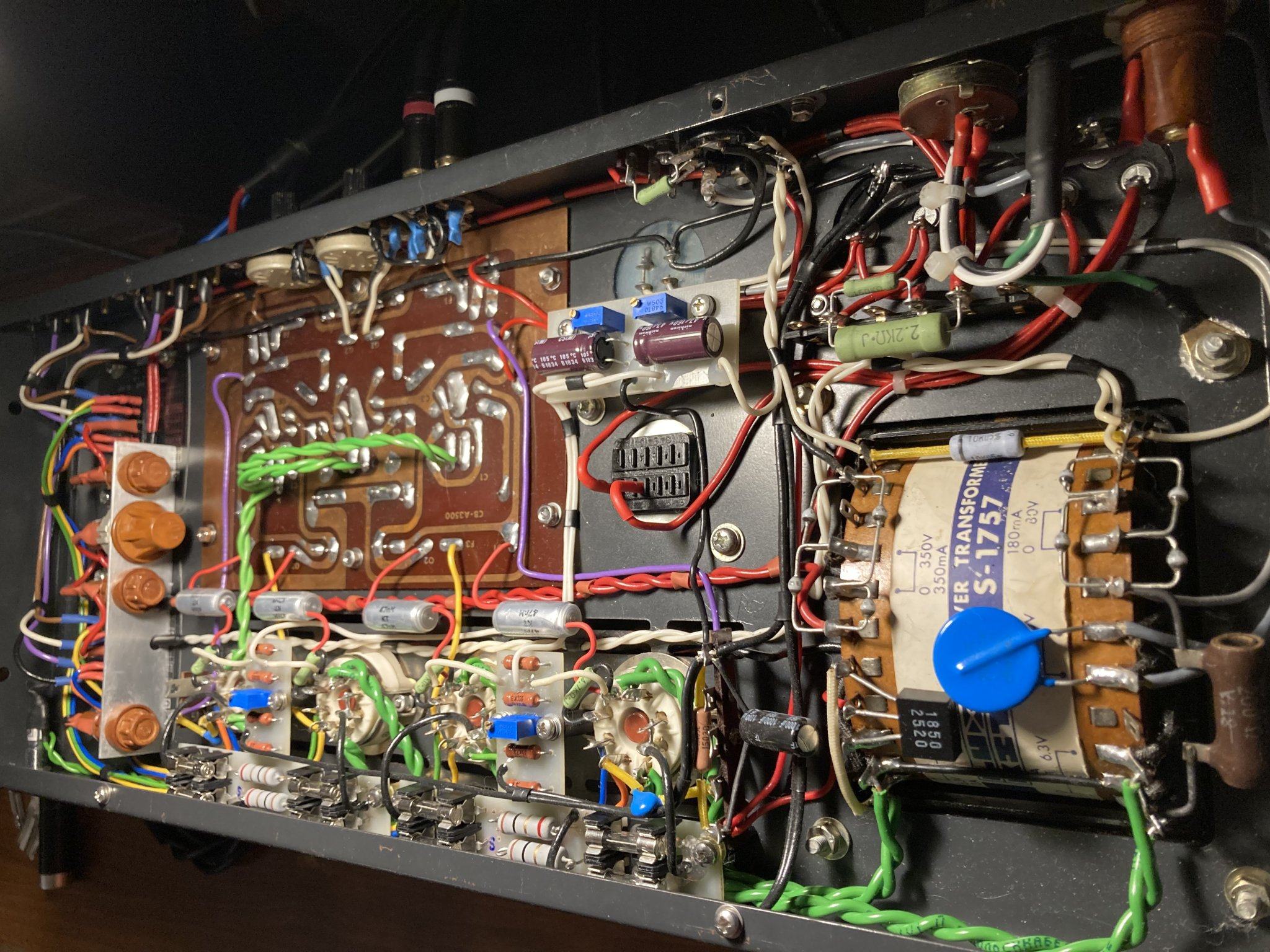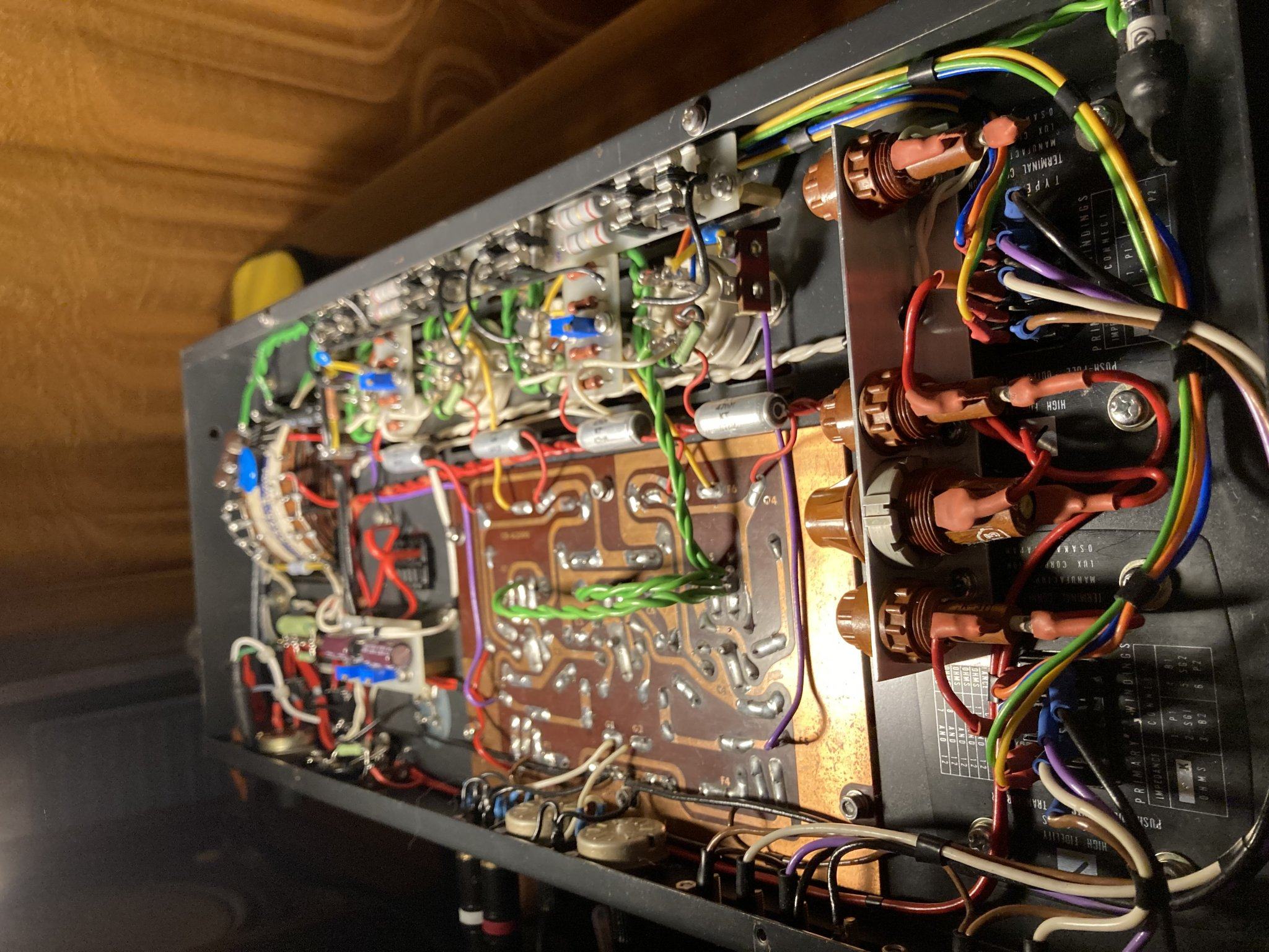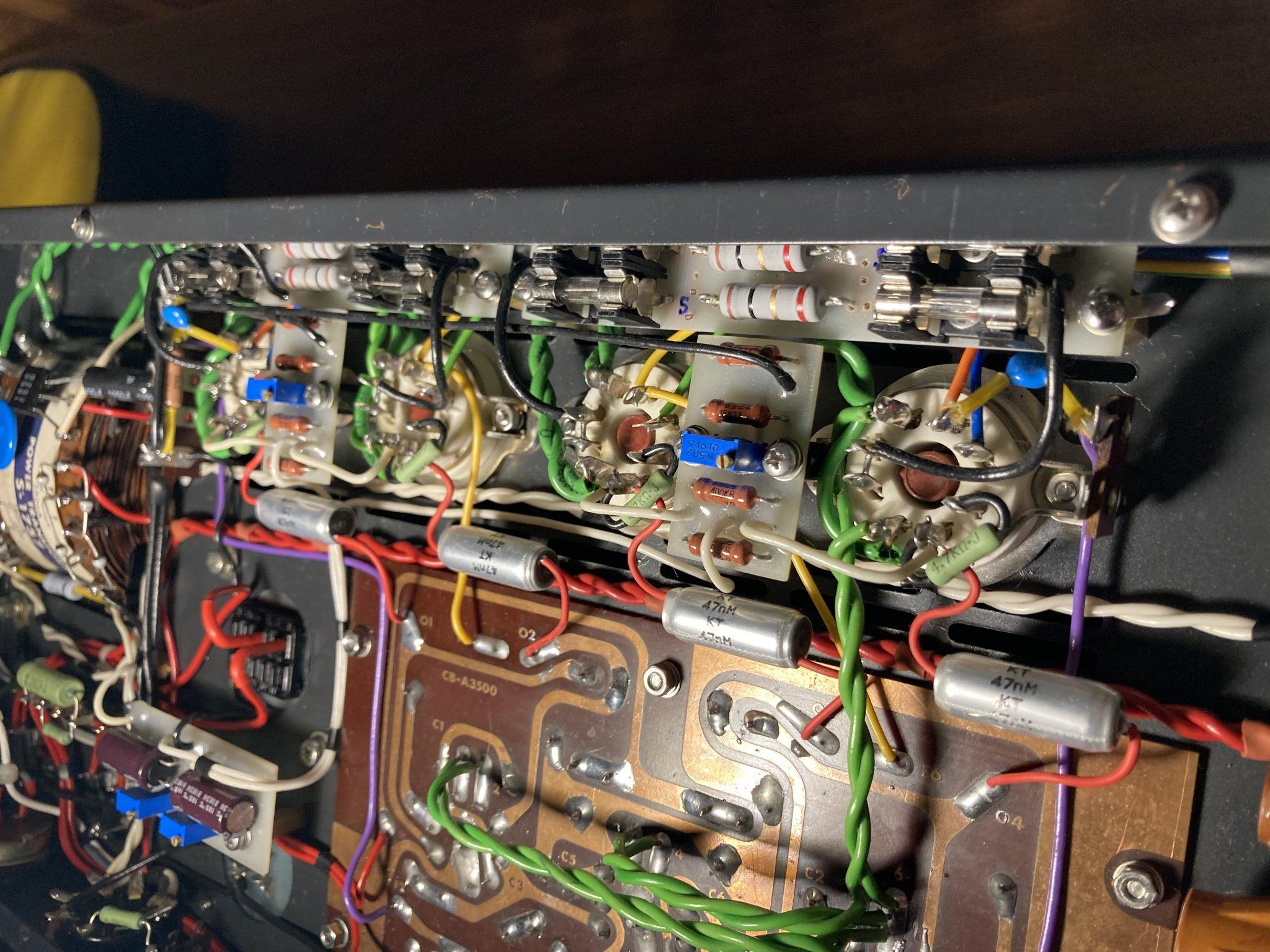 Маршал я упомянул в контексте темы катодных предохранителей, возможно запутал, но не о нем хотел сказать, а о том что в Marshall эти значения срабатывают, а тут - нет. Если ввел в заблуждение, то извиняюсь. Заменено почти все за исключением потенциометров громкости, входных RCA, выходных клемм, диодного моста на выпрямление накала для внешнего преампа (предусмотрено подключение внешнего преда с подачей питания от усилка), дросселя, трансформаторов, возможно еще каких-то мелочей несущественных. Все резисторы, конденсаторы, диоды, выходной транс проблемного канала, провод - заменены. Предохранителей да, напихал много, но решил что лучше перестраховаться, больно уш дорого обходятся лампы раз в два месяца, а проблему решу - буду убирать лишние. На плате возле ламповых панелек предохранителей 8шт. стоит в катодах, но из них работают только 4, а остальные 4 резервные параллельно им подключены, но через две миниатюрные лампочки. Что бы в случае сгорания предохранителя катод не сразу отключался, а просто увеличивалось сопротивление в нем за счет лампочек, чем больше будет ток, тем больше сопротивление ламп и ярче свечение, в случае если ток опять превысит значения допустимого, то дублирующий предохранитель тоже сгорит и уже отключит катод совсем. Такая вот система. Скажете намудрил? Ну да, пожалуй перебор, но непонятно было как вообще это дело ловить и прибор защитить, по этому сделал все, на что хватило фантазии. 47пф и 100r обязательно попробую, если проявится еще раз, пока что надо подождать и посмотреть что будет с новым выходником происходить, может все решится в лучшую сторону и проблема исчезнет. Вообще аппарат очень круто играет и жутко чувствителен к любой мелочи, в нем невооруженным ухом слышно замену детали, так что вносить изменения в схемотехнику лучше уже в случае явной необходимости, так что подожду результатов замены транса. Спасибо за совет! Если есть кому еще что сказать по этому поводу, то с удовольствием выслушаю и намотаю на ус!