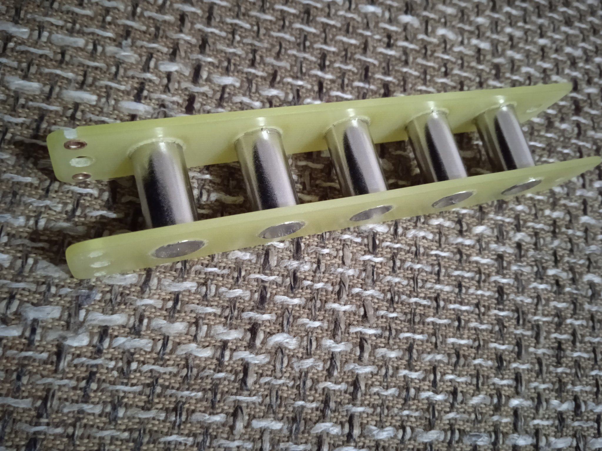 modus2000, Датчиков с неодимом навалом. Даже Фокин выпускал в свое время. По паре таблеток в каждом отверстии. струны не тянуло, но по звуку было что-то мегастранное. Я потом не пожалел денег, вытащил весь неодим, поставил классические сердечники и керамический магнит толстый. Получился очень классный датчик. Ушел с одной из гитар в свое время. Покупатель уговорил слезно.