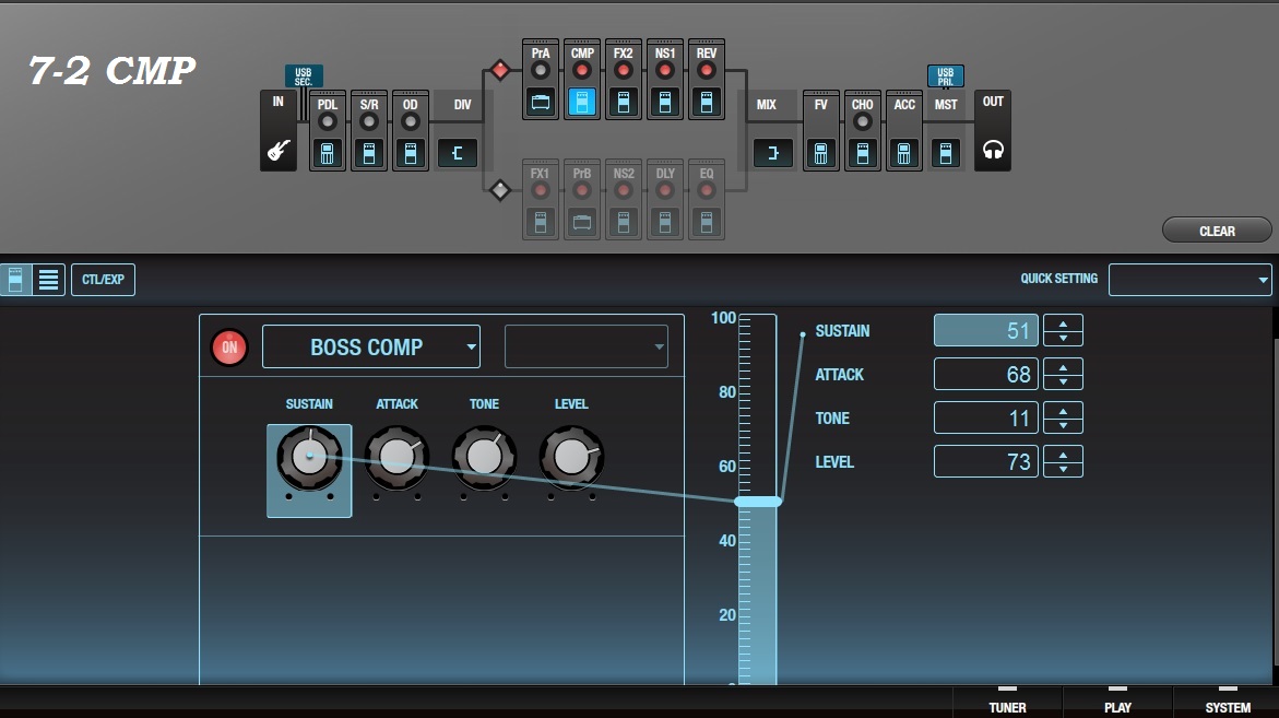 Скример с этим настройками включается и для чистого канала нажатием определенной педали. Как и дилей и хорус. Работаю в режиме педалборда, переключаясь с чистого на перегруз или с чистого + скример.