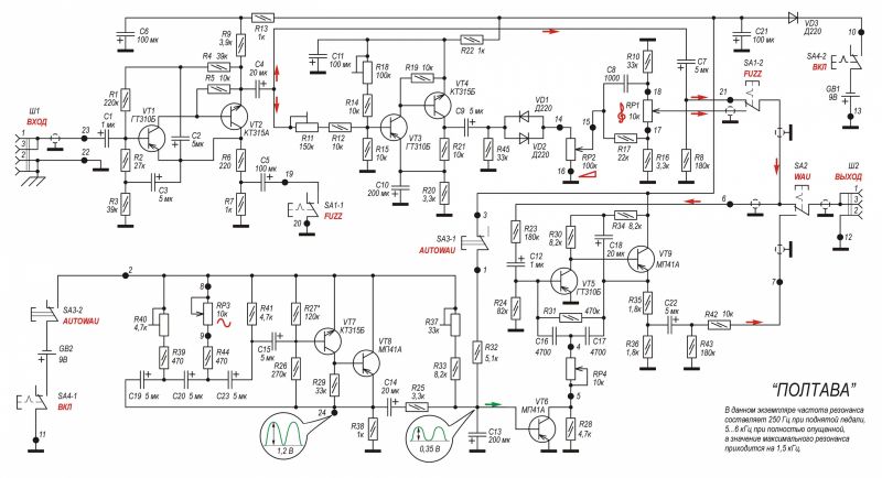При этом меняя номинал R21 так же будешь менять гейн фузза до каких-то значений усиления.