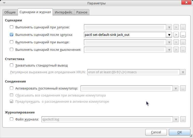 "Что за хрень?" - снова подумал я и начал лихорадочно искать ответ на эту загадку. А ответ оказался прост - для нормальной работы Guitarix требует наличия звукового сервера JACK, который, увы, конфликтует с встроенным сервером обработки звука Pulse Audio. Поставил Jack, скоммутировал и.... хрена лысого - оно по-прежнему не работало. Оказалось, что PA, используемый системой по умолчанию, мешает Джеку. Но я, проявив настойчивость, решил и эту проблему, дописав в настройки Джека строчку сценария, который при запуске Guitarix вместо PA запускает Джека.
