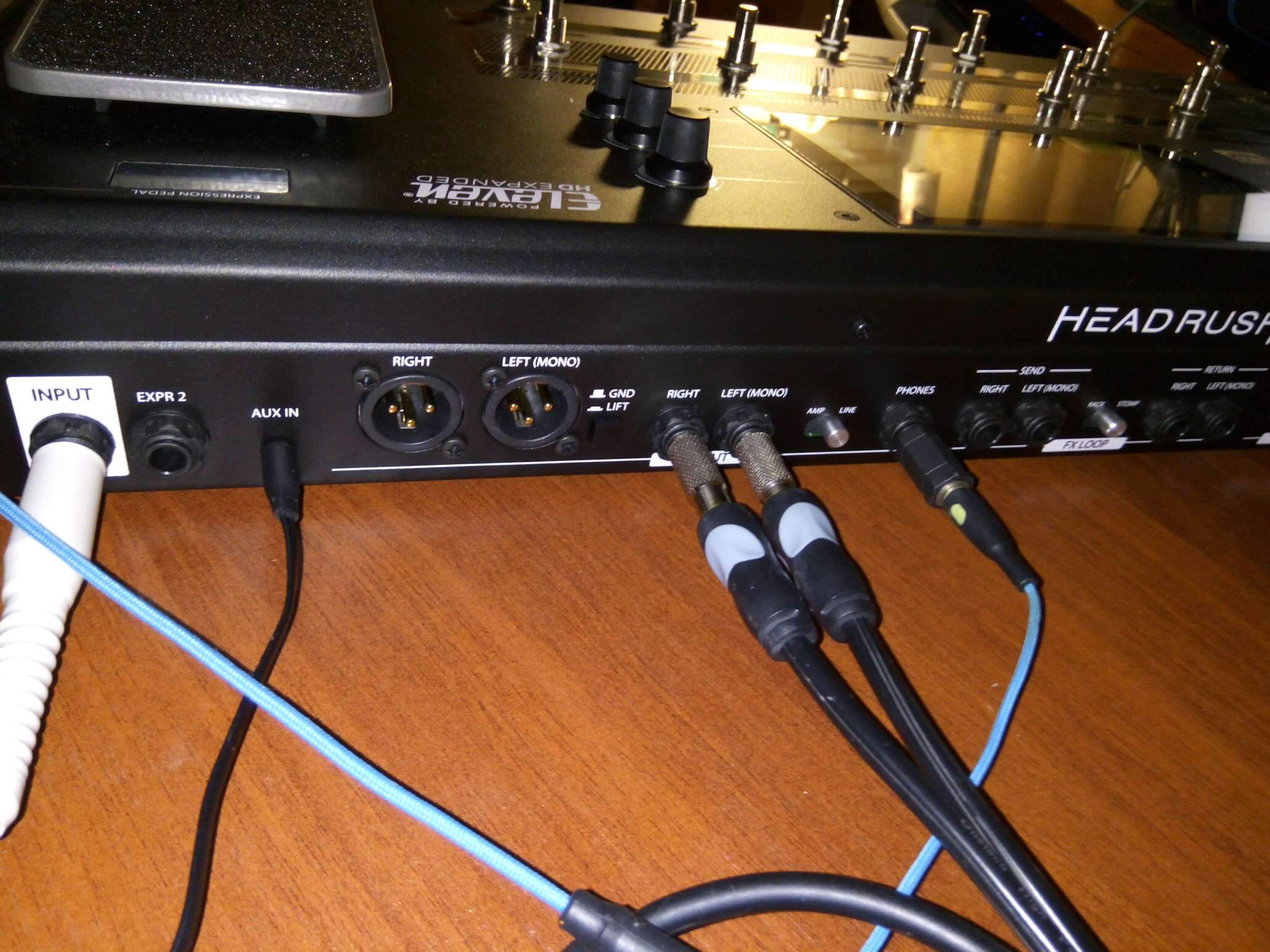 Сенсор это конечно сказка, хотя есть и кнопочное управление. Упрощает процесс в разы, чувство как с педальками, быстренько накрутил, все под рукой. Не плохой аудиоинтерфейс. Хэдраш подключен через переходники с 6.3 на RCA к обычному самодельному усилку на 50вт.