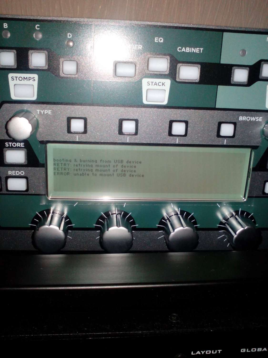 я конечно не в теме, но мой опыт мне подсказывает, что девайс пытается прошиться с usb и не находит флешку. может там есть соответствующий режим, который нужно выключить?