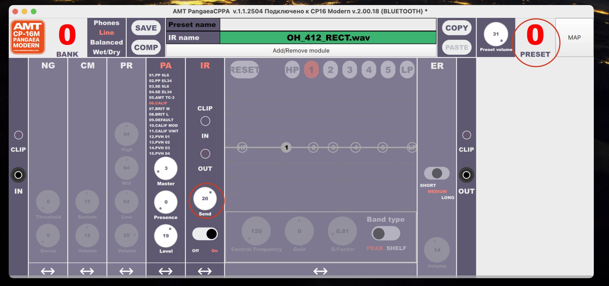 В первоначальном варианте идентично как у выхода "сенд" месы ректифаер было, если используется выход line-out. Но меня такое не устроило, потому что клипповало Пангею CP-100, и когда я засылал Валере на модификацию свой преамп, попросил там пошаманить, чтоб снизить выхлоп, он сделал как в моём усилителе Соло, и вроде даже доп. резистор поставил, в общем, стало более чем приемлемо. Ну а потом я взял Торпеду для второго борда под ЕХ, там никаких проблем с клиппингом уже не было.