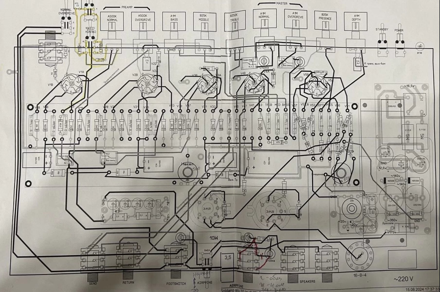 Недавно купил ламповый усилитель, клон SOLDANO SLO-30, собранный на отечественных лампах, 6Н2П-ЕВ - 5 шт., и 6П41С - 2 шт. Звук сравнивал с оригинальным SOLDANO HOT-RODE. Так вот при прямом сравнении звук клона сильно зауженный и гундосый, т.е. не хватает широкого диапазона и яркости, открытости. По всем остальным функциям полностью устраивает. Можете подсказать мастера или мастерскую в Москве, который имеет опыт модинга гитарных усилителей и понимает нюансы звучания вышеназванного усилителя. Если это не сложный модинг, можете подсказать шаги по улучшению звука усилителя.