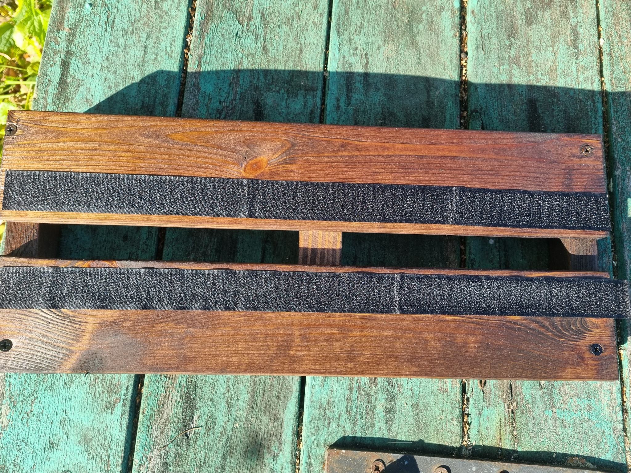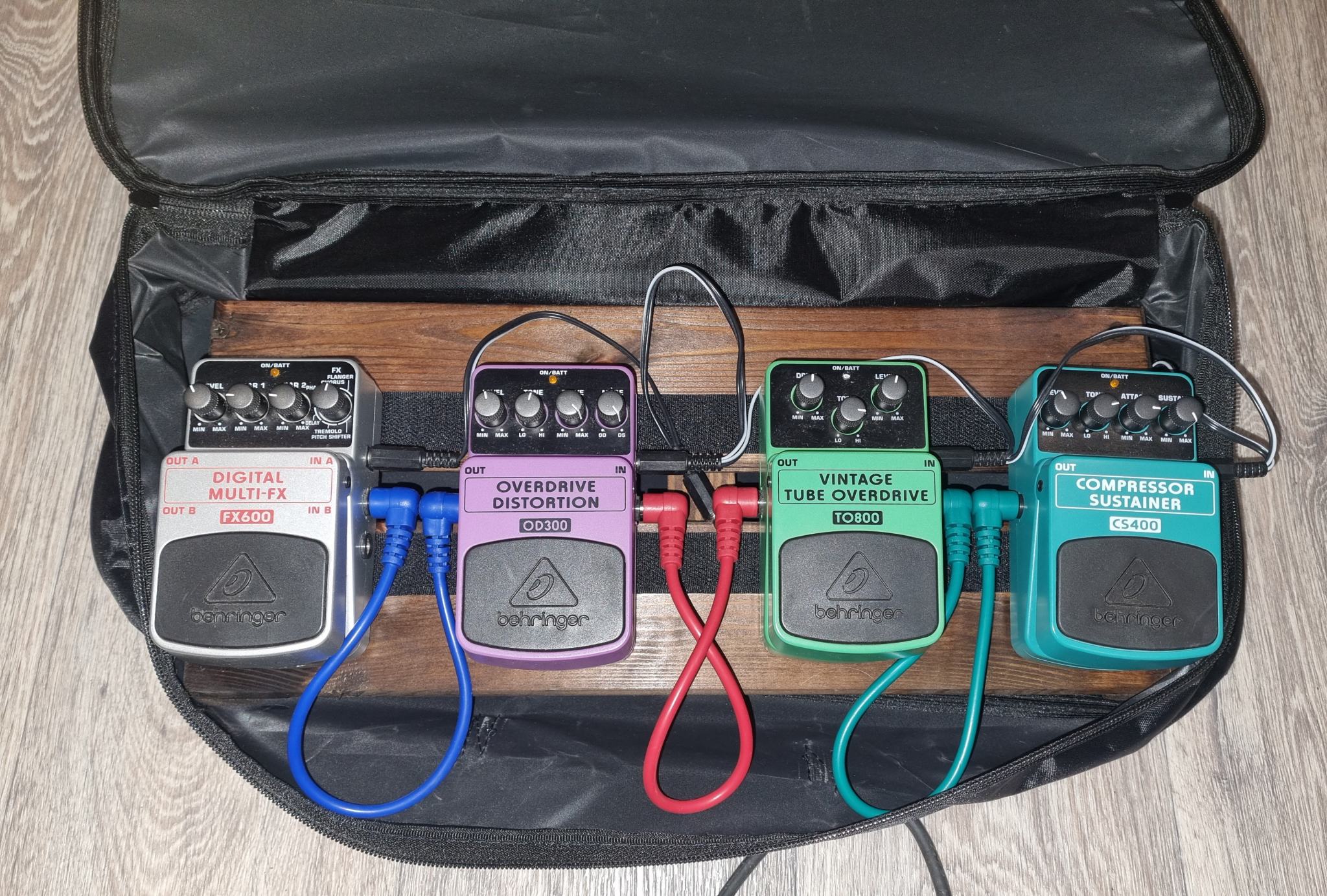 если по уму, то сразу под размер, покупается какой-то простейший чехол от клавиш, маленького синтезатора и тп. На таких размерах борд получается легче чем типичные наклонные алюминиевые pedaltrain, rockboard и тп.