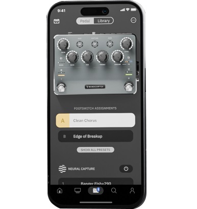 С помощью интуитивно понятного приложения для смартфона вы можете полностью контролировать параметры, опции и библиотеку педали. Выберите нужный вам усилитель и объедините его с выбранным вами кабинетом динамика; добавьте предварительные эффекты, такие как Noise Gate и Pitch Transpose; добавьте атмосферу и аналоговый характер с помощью хоруса, задержки и реверберации.