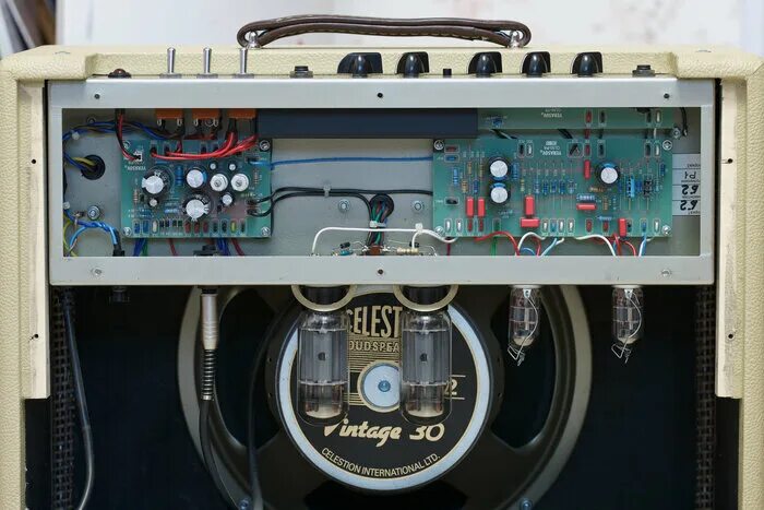 То, что стоит в этом комбике довольно быстро гуглится. И это именно гитарный динамик. И звучит кстати судя по клину очень даже не плохо. Более того, схема предусиления в этом комбике аналоговая. Не удивлюсь, если родной звук комбика будет зачетный.Вот ссылка на динамик.http://www.kicschunil.com/product_detail.asp?id=305