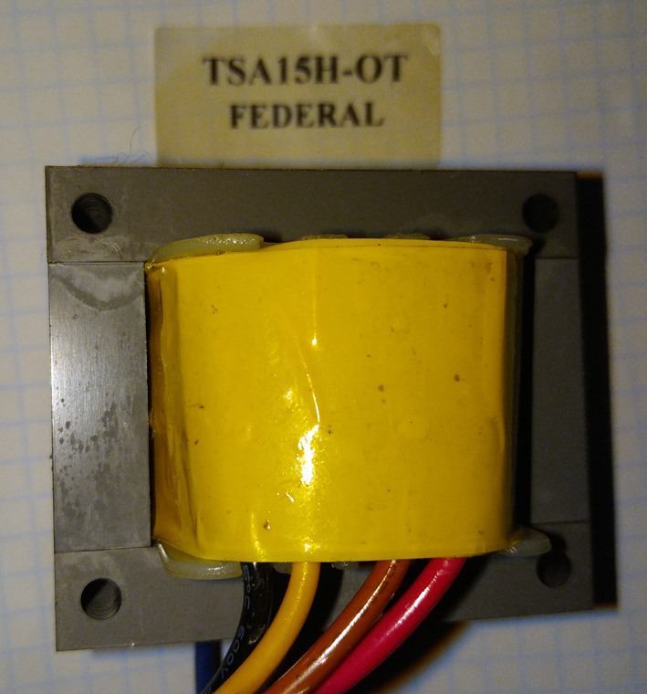 - вторичка: две секции по 74 (4 Ома) + 31 (8 Ом) + 43 (16 Ом) в одной секции, провод - 0,44 по лаку. Секции положены между первичкой и соединены параллельно