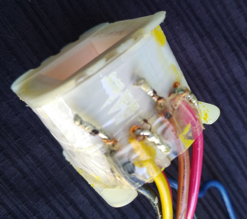 Стяжки проводов удалял я, пайка на переключателе мощности не моя, кто-то проверял транс, полагаю.