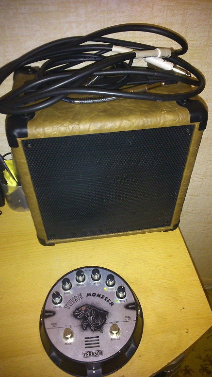Я использую педаль Yerasov Tube Monster (TM-1). Это, пожалуй, лучшая педаль из тех, через которые мне приходилось играть (именно педаль, а не преамп или цифровая приблуда). Очень жирный саунд с необходимым уровнем гейна (на большинстве примочек гейна в 1.5-2 раза больше, но после часового уровня они превращаются в жужжаще-заводящиеся бесполезное устройства) и дающий оттенок Rectifier. Возможность использования овера с дистом не подкручивая настроек (тут уж зависит от гитары и того, чего вы ждете от этих режимов, так как встречались отзывы о том, что не хватает как минимум раздельных ручек громкости) делает ваш звук мега универсальным. Я, к слову, зачастую использую его как преамп, на первом канале достигая легкого кранча для игра аккордов, а второй как стандартный Lead канал. Ранее у меня был преамп Yerasov Pterodriver 5B – нравился исключительно чистый канал-остальные 3 вызывали двоякие ощущения, плюс для работы на сцене поющему гитаристу будет архисложно переключаться с 1-го на 4-й канал, так как не всегда в порыве страсти ловко удается нажать 2 кнопки одновременно. Так вот, у TM-1 перегруз намного натуральнее, естественнее и приятнее на слух (зерно перегруза крупнее, насыщенности и объема больше, песка меньше). Да, он в отличие от вышеупомянутого преампа не подойдет для сверх экстремального перегруза, но всегда есть Tube Screamer. Возможно в будущем напишу подробные обзоры по этим приборам (семплы уже есть), но пока думаю этой информации будет достаточно для рекомендации примочки грязного звука к обсуждаемому комбо.