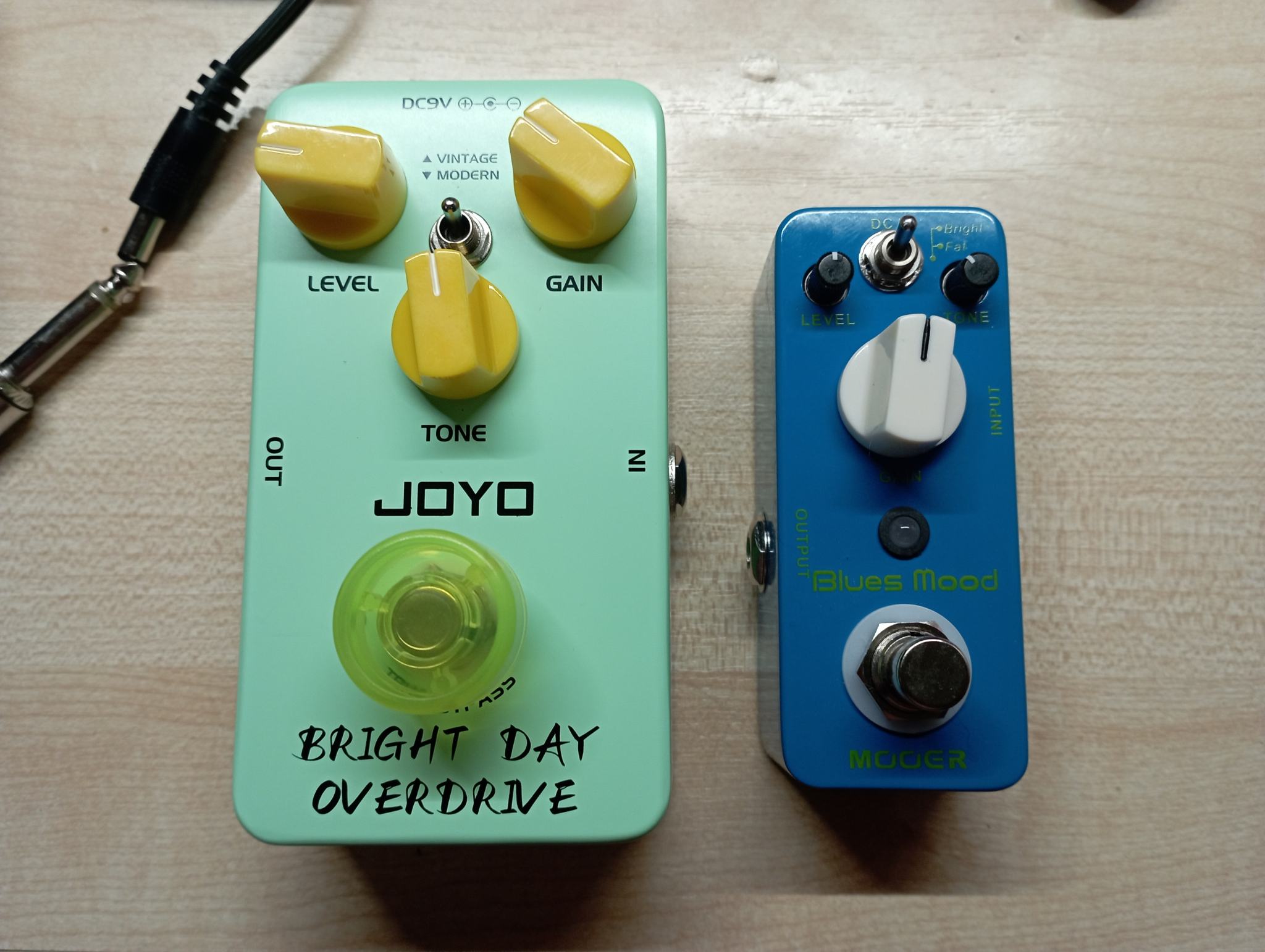 Внезапно пришол Джойо брайт дэй, он же босс блюз драйвер. И в битве с клоном от муйера победил смд-шные Муйер. Джойо слишком резкий звук даёт. Ещё у него более выражен косяк, что до середины громкость набирается медленно, а после середины быстро. Потц там стоит правильный, с характеристикой А, но очевидно там должен быть В - просто у оригинала так было, так и сделали, хотя могли бы наоборот замодить. Ну и у всех джойо гнезда стоят в плотную к плате, в то время как стенки корпуса идут под наклоном. У этой педали одно гнездо,стояло под наклоном (повезло, что то, у которого всё ноги припаяны). Второе гнездо удалось перепаять и поставить под наклоном, чтобы торец был параллельно стенке.