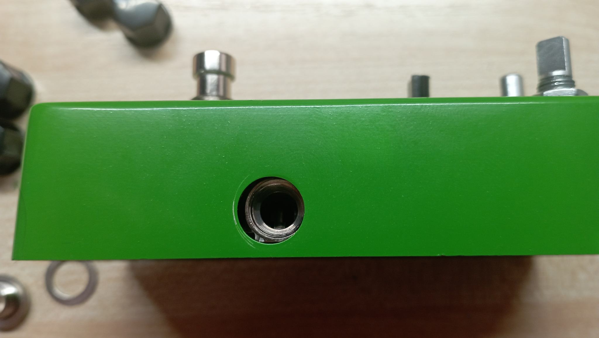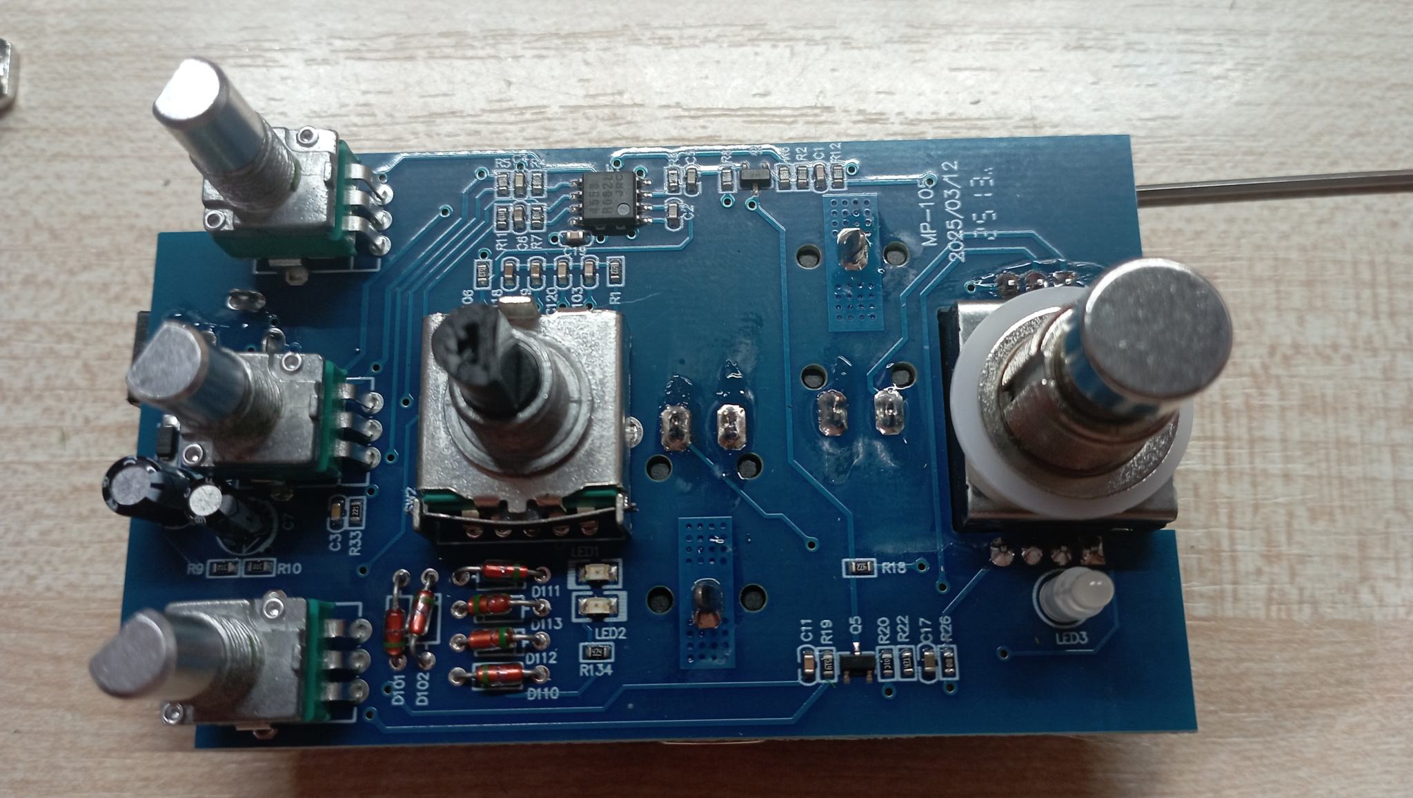 Вскрытие показало, что в звуковом тракте все кондеры СМД. Переключатель схематически с одной стороны переключает конденсаторы, а с другой возможно диоды, но я там глубоко не копал. Отверстия в корпусе под джеки просверлены не по центру. Но сами корпуса сделаны хорошо и покрашены нормально.