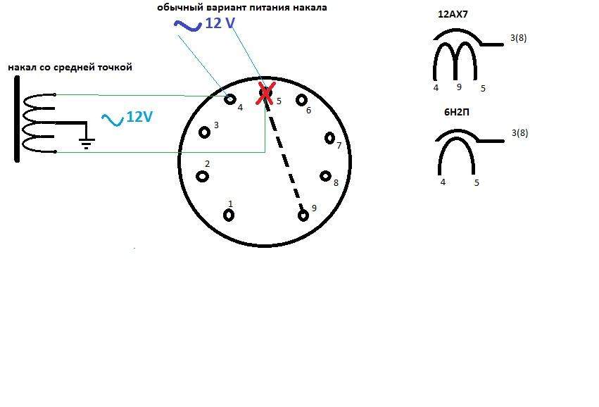 Господин Udaloff, с уважением отношусь к Вашему опыту ампостроения, но давайте рассуждать практично. Есть некая педаль, заточенная под 12АХ7 (ЕСС83). Напряжение накала в ней подано на 4 и 5 вывод лампы, 9 вывод , я думаю, всегда болтается в воздухе. Если есть варианты, внимательно их изучу. Условный пользователь этой суперпедали, начитавшись моих писаний о переделке 6Н2П, откусывает 5 вывод советской лампы и соединяет его с 9 выводом, при этом огрызок 5 ножки изолируется. Вставив такую, переделанную лампу в свою педаль он увидит отсутствие накала, хотя напряжение на анод будет подаваться. В итоге, пользователь ожидаемого звука не получит совсем, но и его любимая педалька, в результате данных манипуляций, со строя не выйдет.