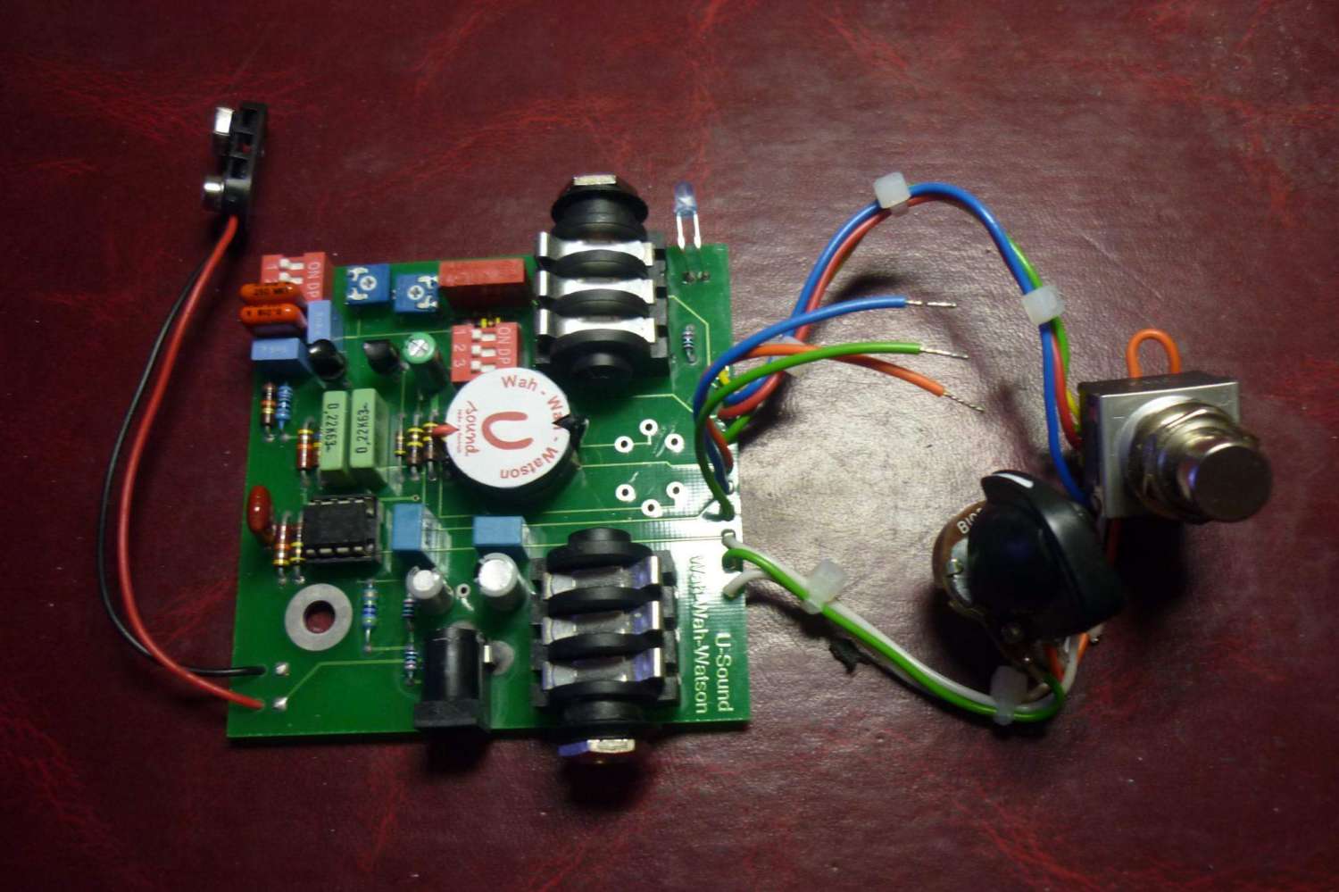 Один вариант - плата в таком виде. То есть остается вставить ее в корпус от CryBaby, предварительно запаять туда стоковую катушку и 3 проводка на потенциометр Вау кинуть.