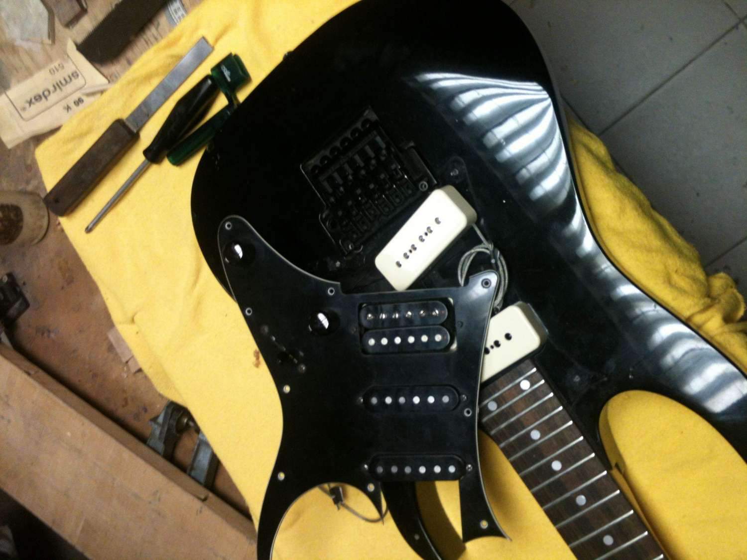 Гитара была мною запеленгована через 7 минут от начала аукциона. На торгах. Шикарная гитара, цвет - вообще капец какой красивый. Говорю знакомому. Тот рад до безумия, ждать нет сил, решаем пробовать купить сразу. Покупаем после долгих уговоров продавца. Далее, как обычно: доставка в США, проверка, всё ОК, упаковка, страховка, вылет, получение. А через некоторое время, уже у нового хозяина, она трескается. Сначала от розетки до бриджа в древесине, а потом вообще дека отходит от кузова! Причем, самопроизвольно. Знакомый в шоке, не знает, что делать, в итоге, решил продать её, по моему совету, господину Красову, что, с помощью своих знакомых мастеров (очень высокого уровня, надо отметить), возвращает в мир земной с гитарного Того Света уже не один инструмент. И ОПА! Ещё одна реанимированная!