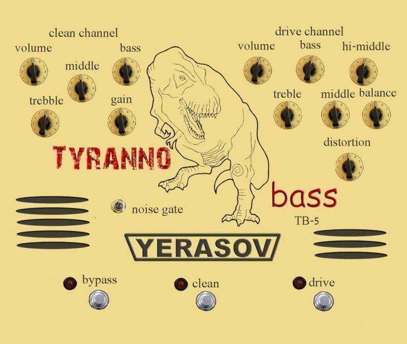 на волне фотожопного безумия над ерасовским лого , я вот нарисовал лицевую панель - если ба он сделал басовый преамп-перегруз . Рисовал так просто особо не заморачивался . Типа продолжение ТьюМонстра и Птеродрайвера - ТираноБасс