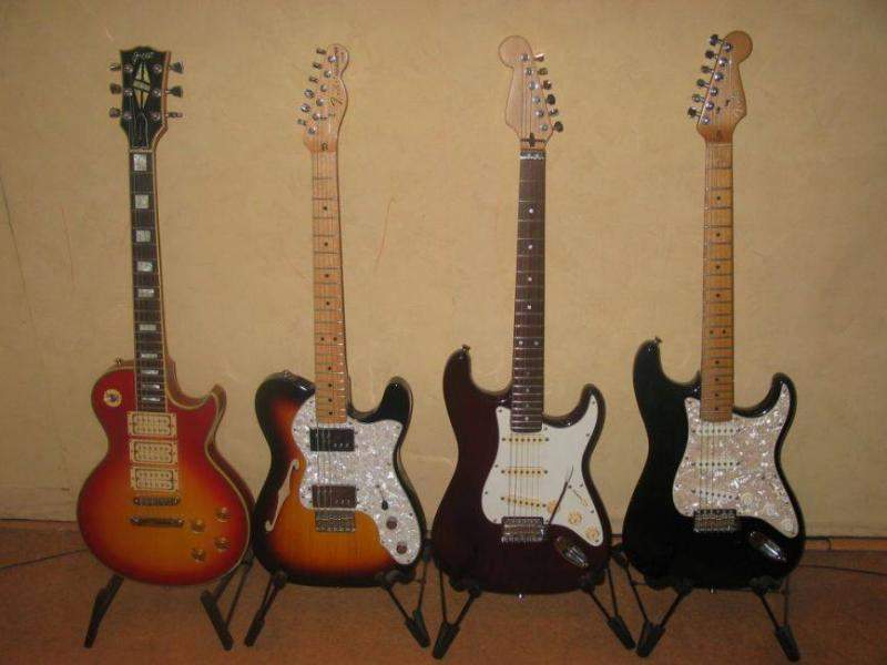 чей гитар круче - для пионеров, просто скажу, что бледнеть возле других гитар, а у меня на мой и не только мой взгляд достойная коллекция ей нет причин, она обрела свой дом и компания хорошая, она одна из трёх самых старых моих инструментов 31год это очень много, как для человека, так и для гитары. Посчитал, всем моим гитарам вместе 192г. обалдеть, возраст разнится, от 40 до 2 лет, но я люблю их всех одинаково(ну может старушек чуть больше).