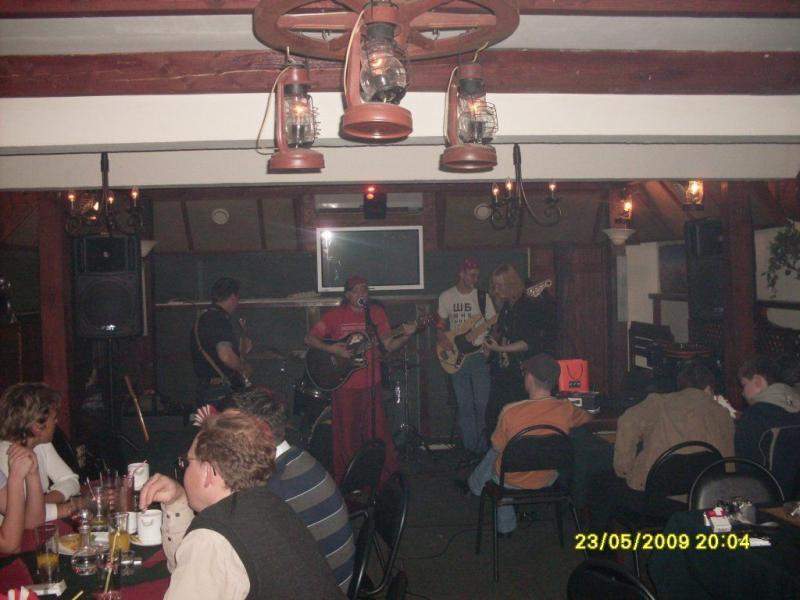 Отпишусь о прекрасном джеме в клубе "Алабама" , как первый приехавший домой. Черт,это было реально здорово. Я и мои друзья (Дима и Дима) тоже были очень рады присутствовать, понравилось все очень. Вообще теоретически с ними я и собирался коллектив собирать, но пока оооочееень большая проблема с басом, мы его просто найти не можем. Ну сейчас не об этом . Сам клуб-очень здоровское место,стилизованное под запад, дорога до клуба была комфортной,ибо нам ехать было не так далеко, найти клуб было проще простого, Гриня все грамотно,как обычно, объяснил. Первыми приехал Рома, и привез с собой пару ребят помоему. Потом и мы нагрянули с ребятами, встретив Майка, был очень рад его видеть,с зимних джемов не виделись с ним, и Стопбар подошел. Потом и Гриня привез громадную кучу Эквипа,все утащили, потом и остальные подъехали все, стали отстраиваться. В процессе потом еще народ подходил. Было интересно, начали со СРВ шаффла, чем закончили-не знаю, басист мой попер домой,и нас утащил,потому очень извиняюсь перед теми,с кем не успел попрощаться:Гриня,Алиса,Венцеслав,Стопбар, извините, не красиво вышло, но что поделать,сам ооочень расстроился, мы с Длинным Димой,очень хотели остаться, даже выходили из клуба разобраться, как бы нам подольше басиста подержать,в итоге до 22.15 дотянули. Понравилось так,что и уезжать не хотелось, конечно мне очень понравился Стопбар, замечательная стильная игра, было очень приятно вас слушать,спасибо за выступление,+1 вам. Естественно Алиса, Венцеслав вам тоже большое спасибо, за Антисектантский блюз в частности, нам очень понравилось с ребятами, вспомнили знакомых Кришнаидов как раз