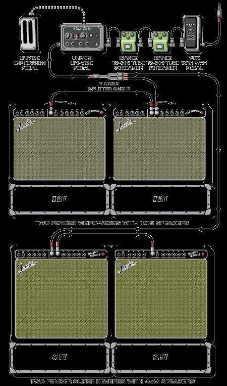 Dr.Evil, насколько я знаю, два тубскримера-для более сильного "подогрева" усилка. Не могу найти ссылку на статью, где даже сказано про настройки этих скримеров. Помню только, что драйв - немного, а уровень- гораздо больше! И вроде у каждой педали по разному. Кстати, гитарный мастер у Стиви менял полупроводниковые детали на альтернативные(кремний на германий или наоборот - не помню).