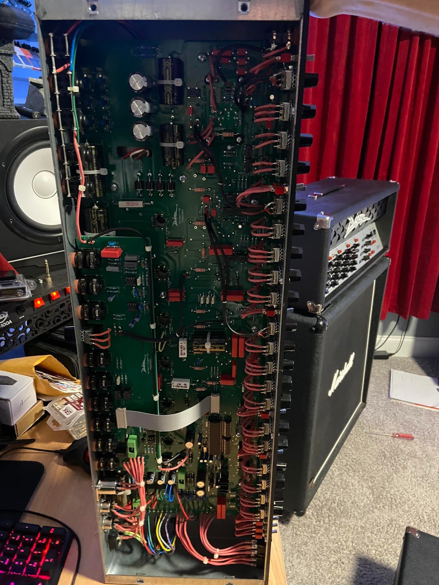 В итоге: на 2007-м стоит линейный пот на 45 кОм, в положении на 12 часов он дает где-то 25 кОм. А второй усилок(что на 10 дБ громче) — уже с логарифмическим потенциометром на 911 кОм; в положении на 12 часов он выдает около 41 кОм. Временно на логарифмическом просто передвинул ручку, чтобы на 12 часах были искомые 25 кОм. Но по возможности поменяю его на линейный пот, как на аппарате 2007 года. В идеале, конечно, стоило бы поставить туда галетный переключатель, чтобы FX Return щелкал по заранее заданным уровням возврата. Например 0-50ком с ходом по 10к Вроде мелочь, но в стерео приходится за этим следить, чтобы картинка по панораме была одинаковой, и в самих усилителях и если подмешивать эффекты.
