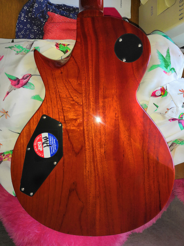 True Divaner, дека из двух кусков махагон, магагоновый трехкусковый гриф с волютой, глубокая вклейка грифа(лонг теннон), кленовый шпон натуральный из двух кусков, кленового топа на тушке нет, чисто краснушная гитара, очень интересно звучит на чистом и рычит по леспольному