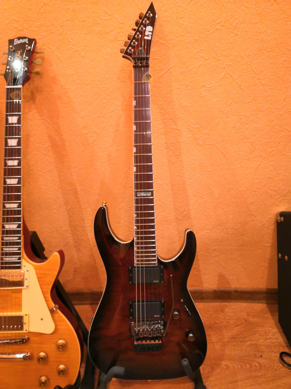 Два года назад сносил её (EC-1000 2007-ого) к мастеру на отстройку анкера и мензуры с целью нацепить новые струны (12-56) и уйти со стандартного строя в Drop B.