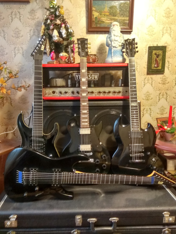 Гетара долго-долго лежала в чехле, потом оттуда вылезла и была перестроена в стандартный строй. Да, с анкером, отрегулированным под перевёрнутый книзу вверх Drop B, со струнами 12-56.