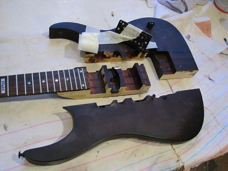 после первой трети ладов отпала одна половина, где то на середине грифа вторая. на просвет щели сияют, тупо непроклей. каждый кусок держался на нескольких маленьких точках.