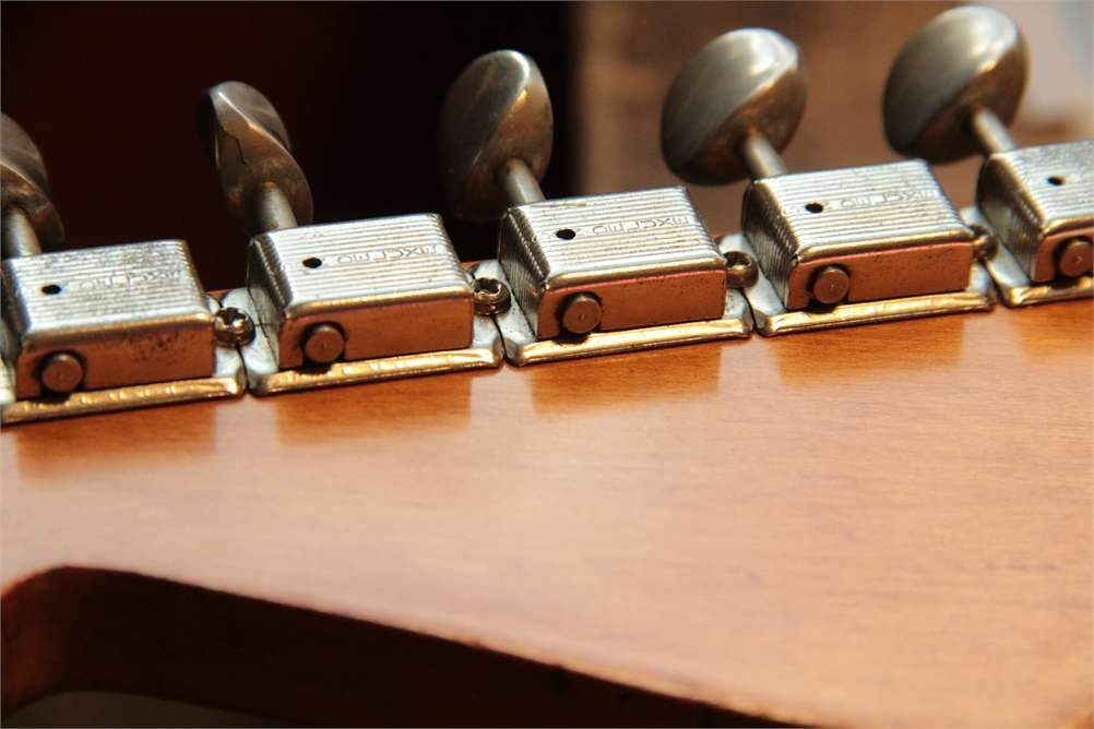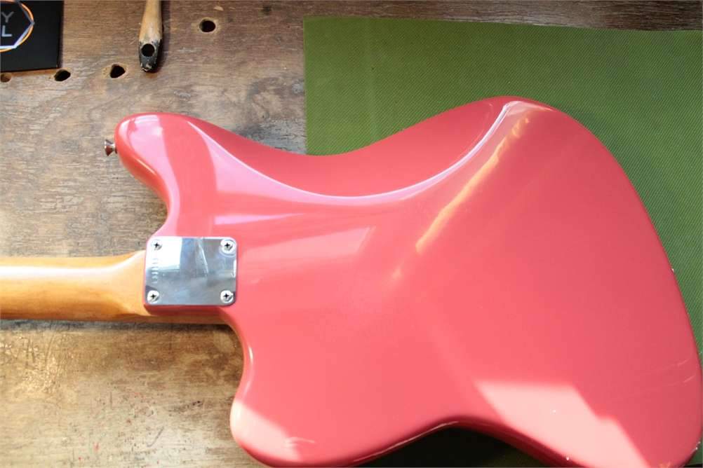 1. MG69CO LPB с полосой и крашеной головой грифа как у Курта в SLTS, грифы у этих моделей тонкие, датчики слабенькие (но у всех японских мустангов датчики 5,4-5,6 кОм), толстый слой краски и полиуретанового лака, глазурь короче ))) Корпус липовый, кусов 6 или 7 пока считал склейки сбился со счета, короче внешне красивый, а звук - поиграл, сфоткал и убрал в шкаф, потом продал.