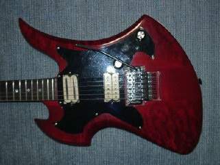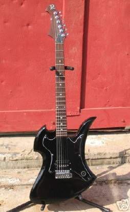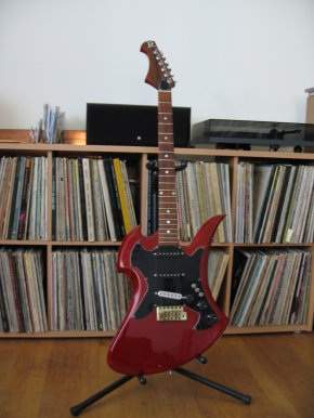 And indeed, I always saw Mockingbirds with humbuckers, no pickguard, tune-o-matic bridge (rarely a Floyd Rose trem), like the metal oriented guitar it's meant to be. Then I noticed the headstock - reverse with 6 tuners in line and a big R logo... Definitely not original, and in spite of what its eBay seller claims (and I'm sure that he knows that this is not true), this is not a vintage Mockingbird but a frankenstein - and I have to admit that I quite like it better like this!