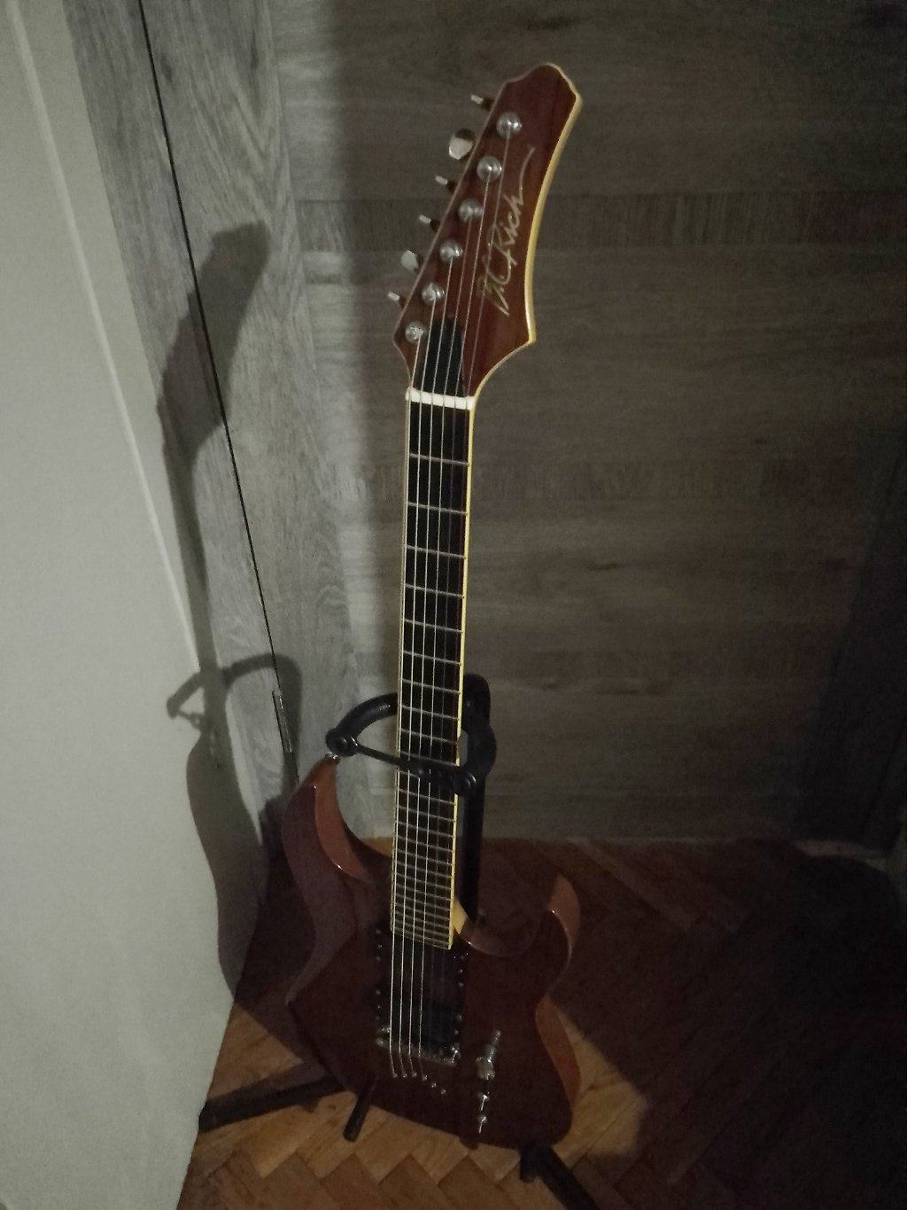 У меня вот такой Assassin. Сквозной гриф, накладка на гриф из ебони, звучки EMG. Выкладывал ранее.