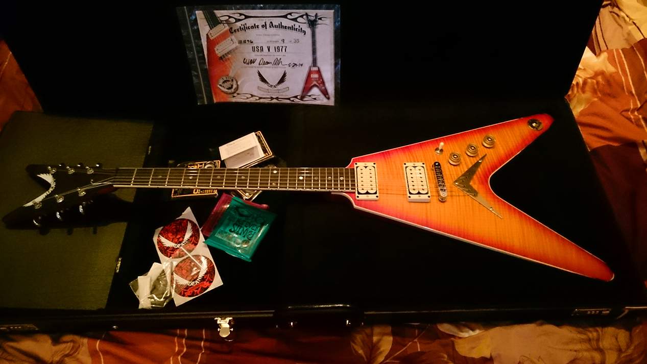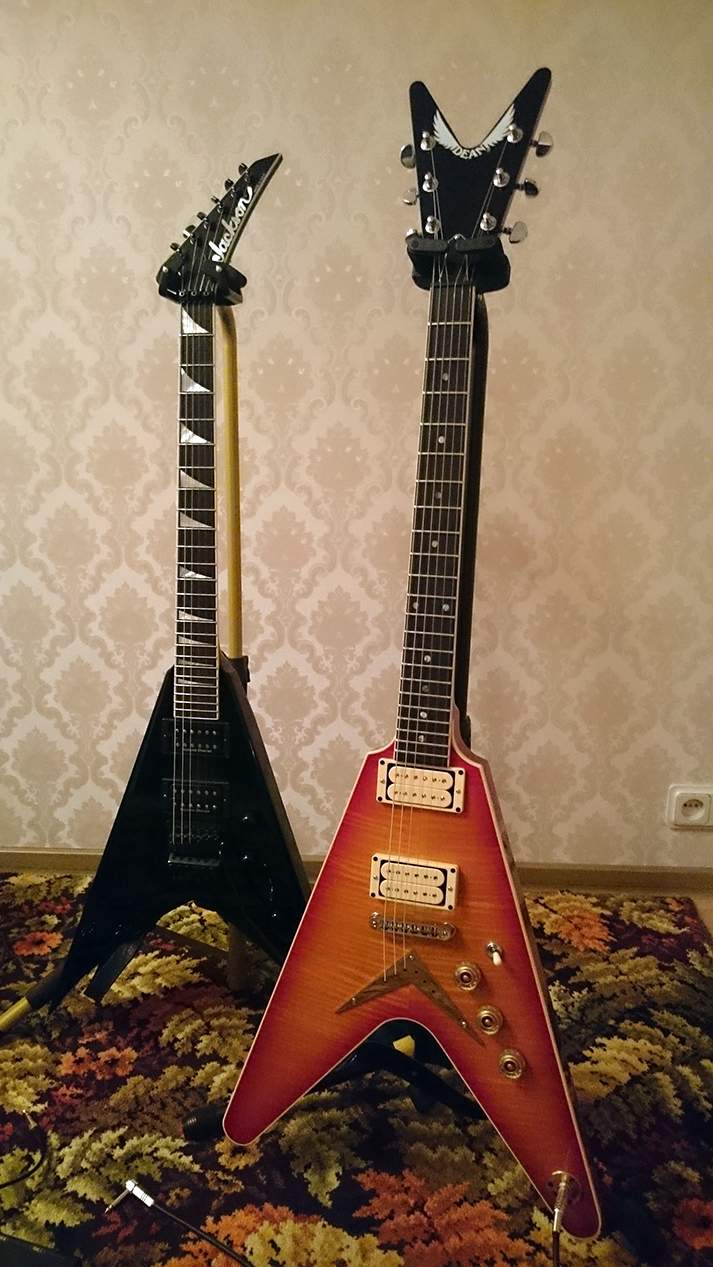 Спасибо! Пришел с работы сделал еще пару фоток, но фотограф из меня хреновый. Пока не удалось особо поиграть, но первые впечатления описать могу. Гитара оказалась удивительно легкой, по ощущениям Джексон весит раза в полтора больше. Хотя Дин выглядит массивнее, чего стоит одна только голова!! Сустейн просто чумовой, и звучит гитара очень громко и отчетливо, такой глубокий плотный звук (датчики стоят ДиМарцио Супер Дисторшн).. На выходных поменяю струны на Джексе, всё настрою, может быть сравнение какое-нибудь сделаю, гитары стоят примерно одинаково.