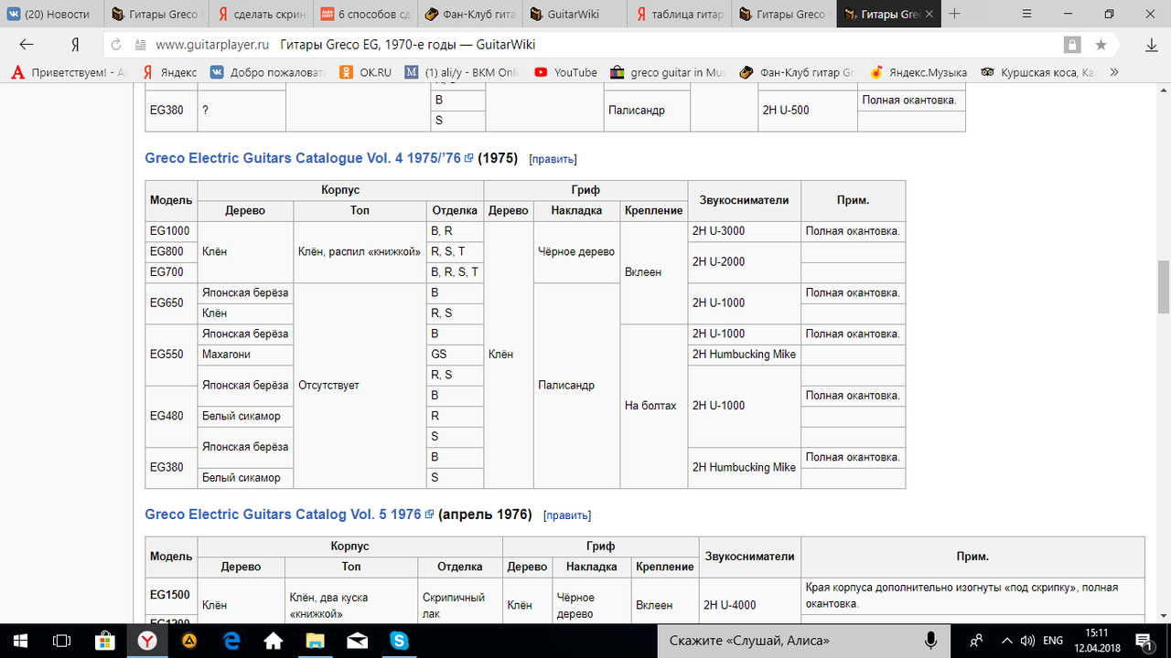 Уважаемые грекоманы, подскажите, где можно найти целиком сейчас такую страничкус подробными спецификациями гитар Греко (желательно на русском)?Скриншот из темы, по ссылке никак не переходит