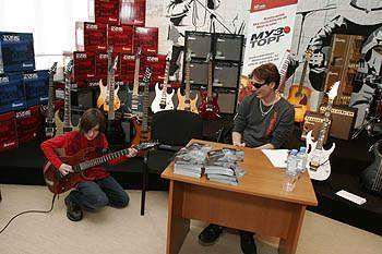 "Из того, что запомнилось на этой автограф-сессии - это пару событий. Первое - это очень маленький мальчик - я не разбираюсь в возрастах детей, но кажется ему было лет двенадцать. Он был не больше своего Ibanez. Он пришел с мамой. Видно было что работники магазина их знают. Они попросили сыграть для Стива и мы подключили парня в комбик Ibanez TB50. Видно, что он сильно волнуется, но не смотря на это он сыграл Стиву минут 5 и надо сказать сыграл очень хорошо, по взрослому. У парня есть техника, мозги и явный талант. Стив поаплодировал и сказал, что он в этмо возрасте играл намного хуже (если быть точным еще и не пытался играть). " тынку