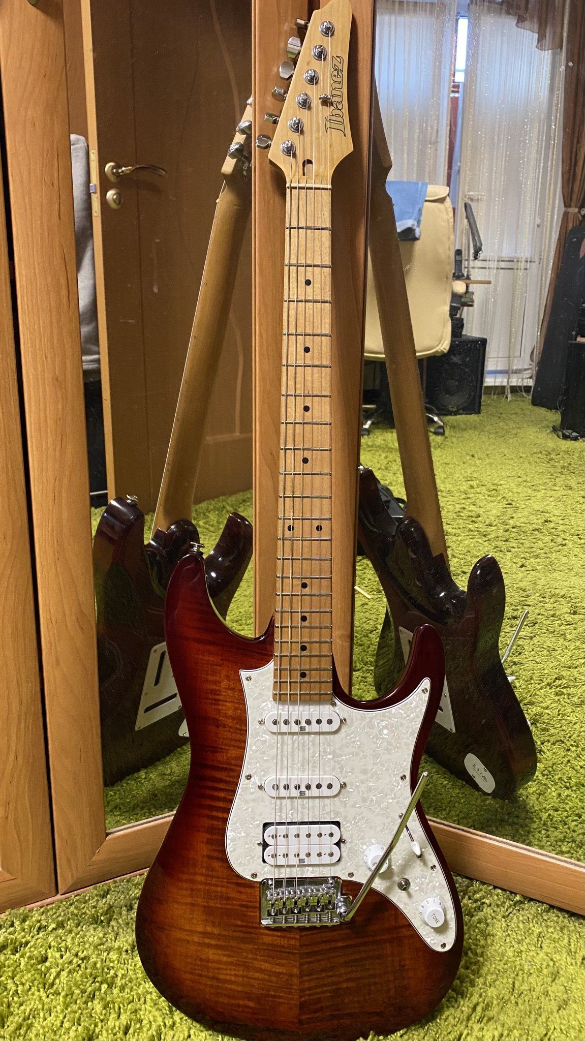 Спс. По сравнению с классикой если брать старые RG550 то тела в звуке здесь побольше, не так плоско. Но тут и ладов не 24. В этом корпус липа с топом из клена + гриф клен с накладкой.
