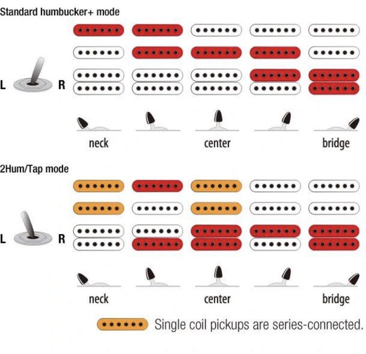 По датчикам - обычно сеймура мне не осень нравятся из-за слегка «ядовитого» звучания, тут вроде такого не замечено. Очень понравился распай: в одном варианте чисто стратовский, в альтернативе есть и телек (крайние синглы) и прочие варианты. Хорошо.