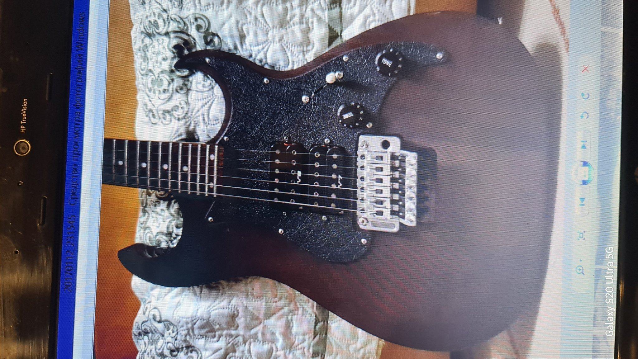 Вот типа его кастома, в более хорошем состоянии. Нет, чувак, он не мамонт, он знает, сто удачно обменялся и скинул свой "крутой кастом" даже с неродным бриджем и без кейса. Я уже не говорю про обдолбанную накладку, кисточкой замазанные проплешины лака, кривовыведенную накладку, не родные болты топлока, кривые, уобаные лады из под криворучки, на доведение только которых надо отдать около 7Кр, темброблок спаяный не экранированными проводами