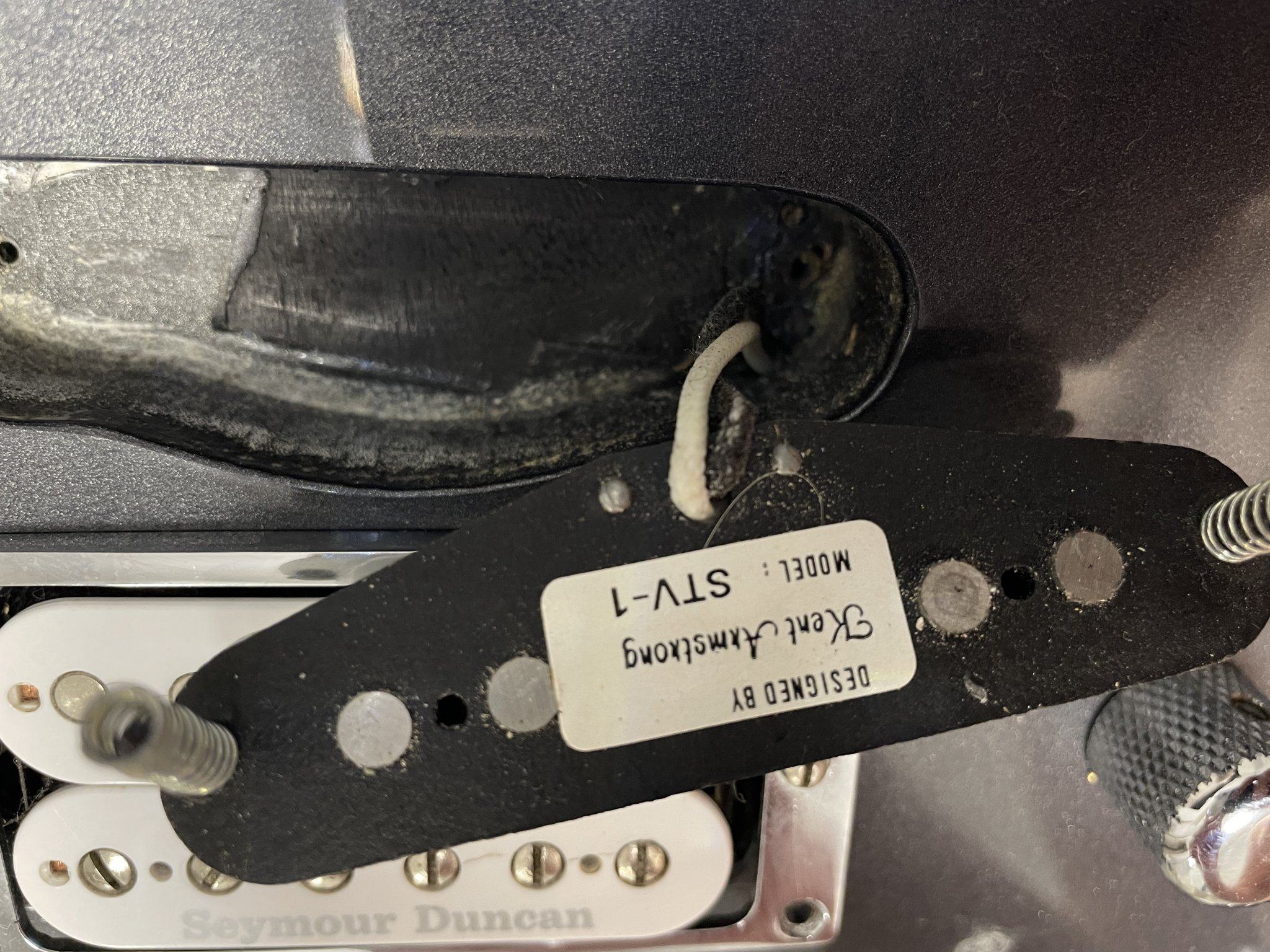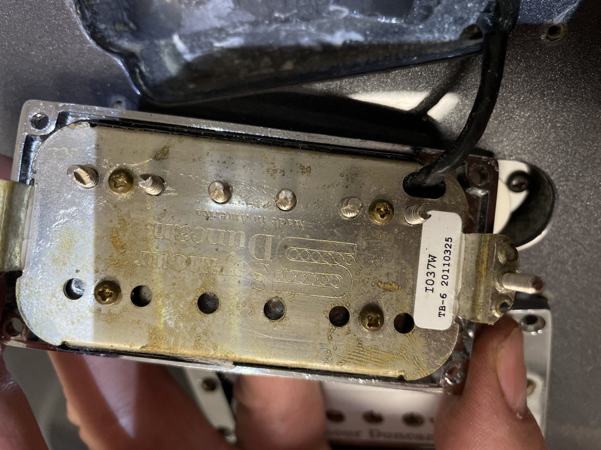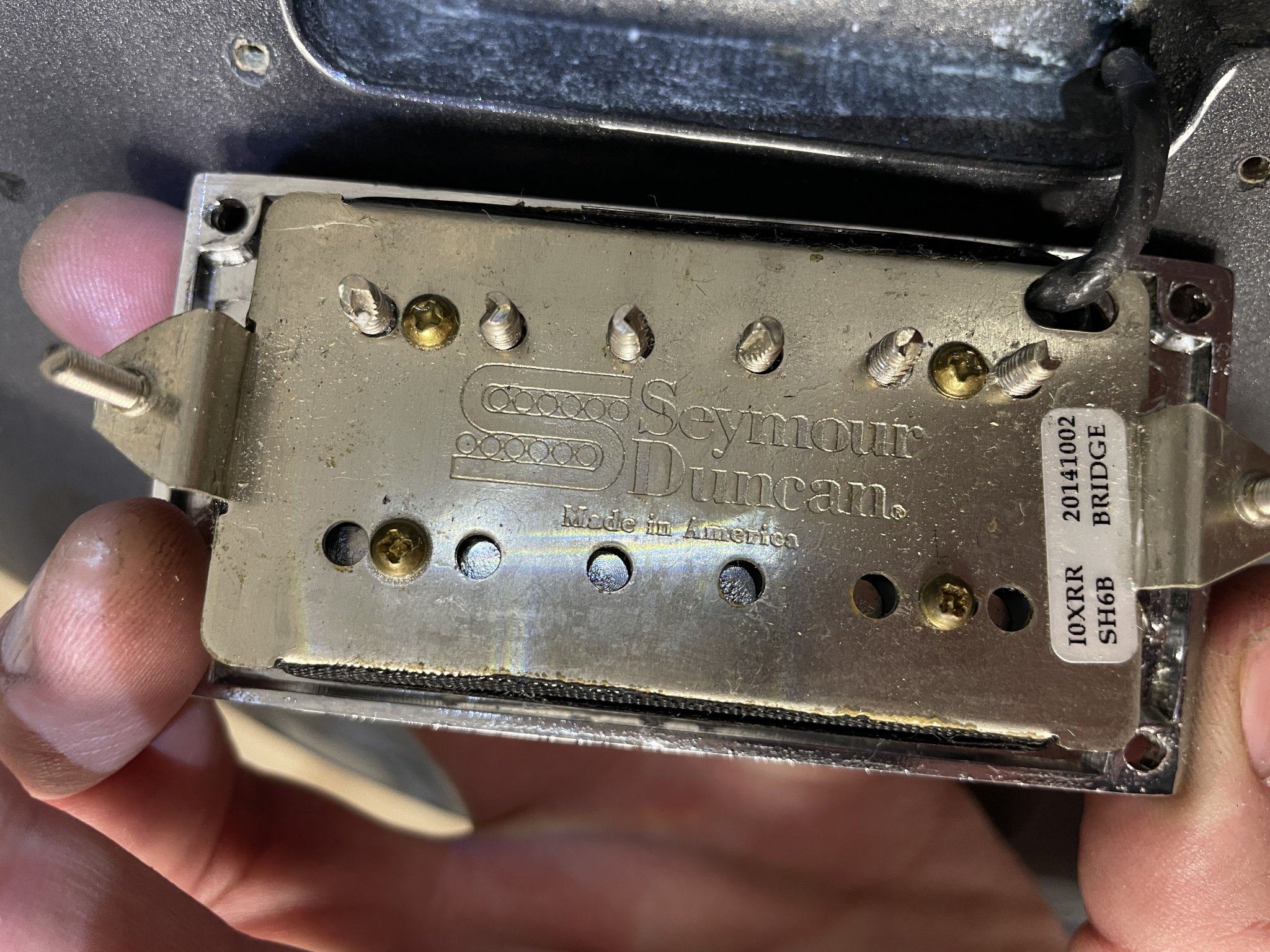Предыдущий хозяин воткнул Seymour SH6 50мм в бридж (спейсинг не совпадает) и TB6 53мм в нек (думаю может местами их поменять - по сути же одинаковые датчики только с разным спейсингом )