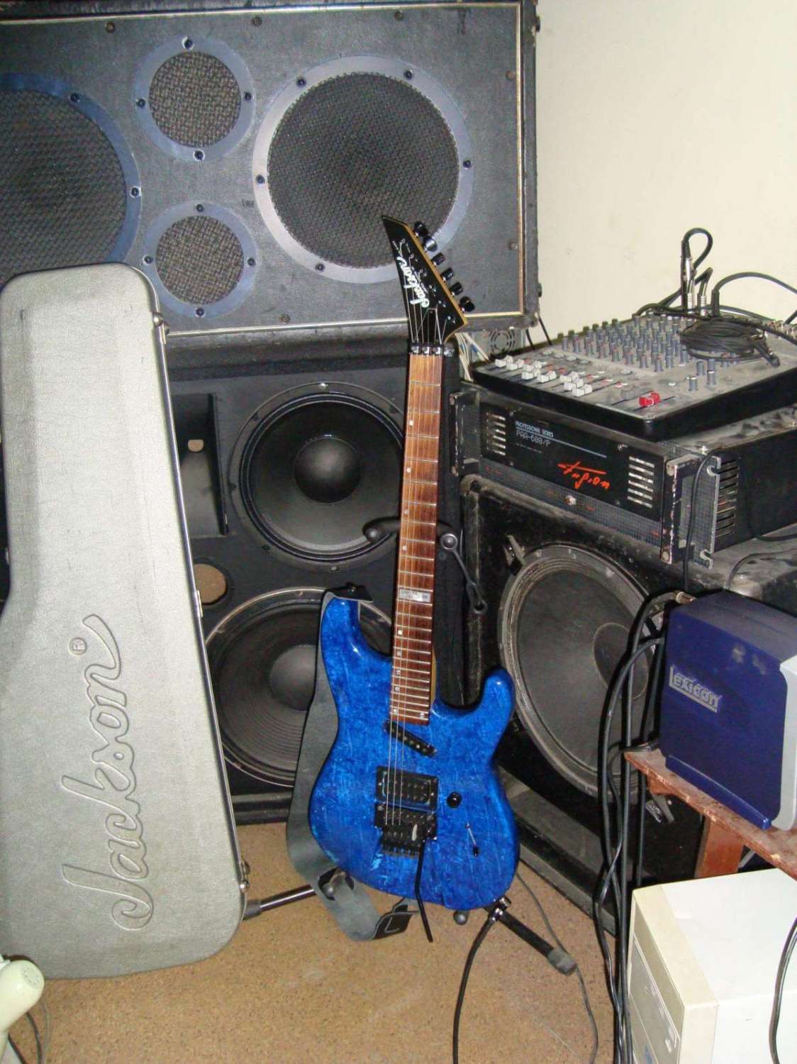 5) Шамрай с закосом под джем Стива Вая - тоже не уверен до конца, что я понимаю этот инструмент. Весь из волнистого клена, по спекам аналогичен Хамеру мэйпл боди, но стоят датчики Сеймур данкан Сет Ловер (хамбакер) и два телекастеровских тоже от Сеймора.
