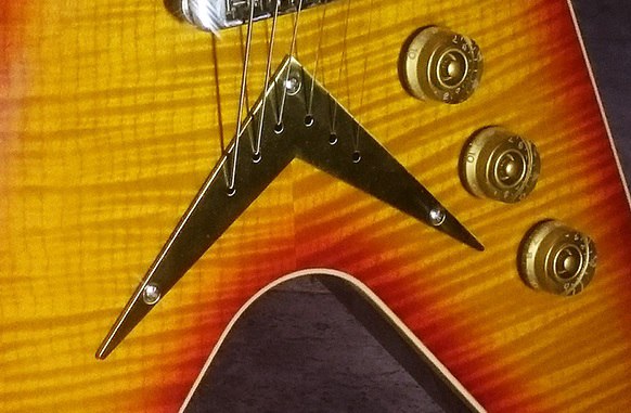 вобщем-то изучил паркет.. ну конечно критиканы скажут что небольшой шовчик там угадывается, но... Во-первых, отборность клена на высшем уровне: если гипсан лес - пол, то дин - потолок в плане качества и сборки. Дальше, как видим для данной гитары мастерами была применена форма стрелы(ака флаинг-ви). Благодаря подобной форме деки достигается минимизация длины продольного шва, что само по себе уже сводит на нет эстетические недостатки данного покрытия. А чтобы полностью скрыть половинчатость клена, линия дополнительно маскируется металлической хреновиной в которую уходят струны, роликовым бриджем шаллер, а так же хамбакерами димарцио супер дисторшн 2 шт... Ну а на добивочку я тебе открою секрет что эта дека данной стрелы сделана из одного куска краснухи, то есть сзади через нитролак не видно никаких швов и склеек. Но не спеши в коммерс выставлять свои палки, таких динов в мире всего 35 и мой не продается.