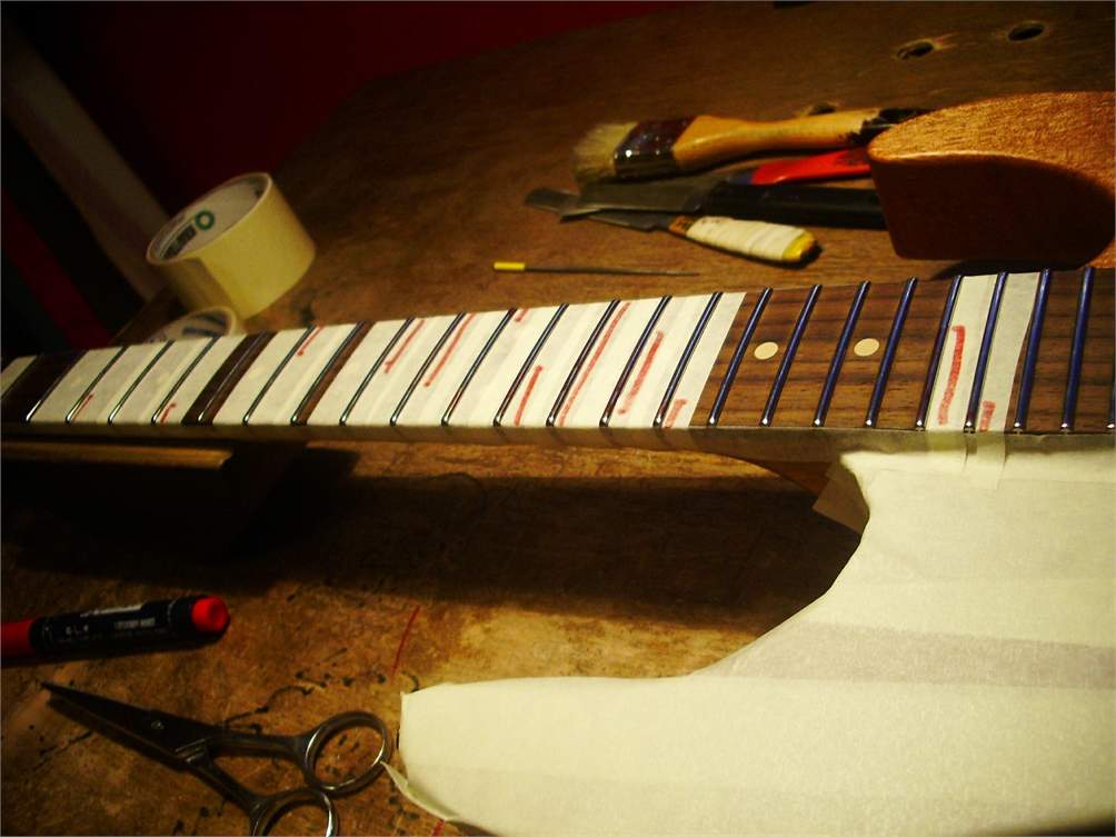 красные пометки - это не ровные лады, практически весь гриф..