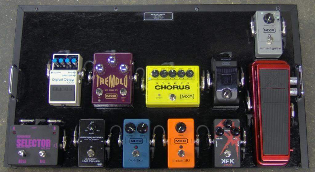 Да, негусто. По поводу стоковых я наверно неправильно выразился, именно современные модели стоковых педалей имеют корейские и китайские комплектующие. К Слешу отношусь ровно - без излишних восторгов. Но рискну предположить, что учитывая то, что у Слеша именная модель mxr-овский Вахи, вся его mxr-овская цепочка именно с той самой изначальной начинкой. Думаю, что это дежурный педалборд для клубов, где усилки - не всегда соответствует запрашиваемым требованиям. Особенно озадачил шумодав, при такой относительно небольшой цепочке и, играя на хамбах вряд ли возникнет столько шумов, чтобы их срезать шумодавом, тем более, что шумодав сам поджирает звук. Более чем уверен в том, что записывается он совсем на других приборах...