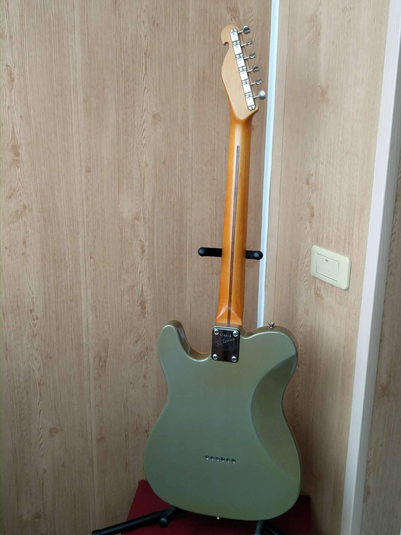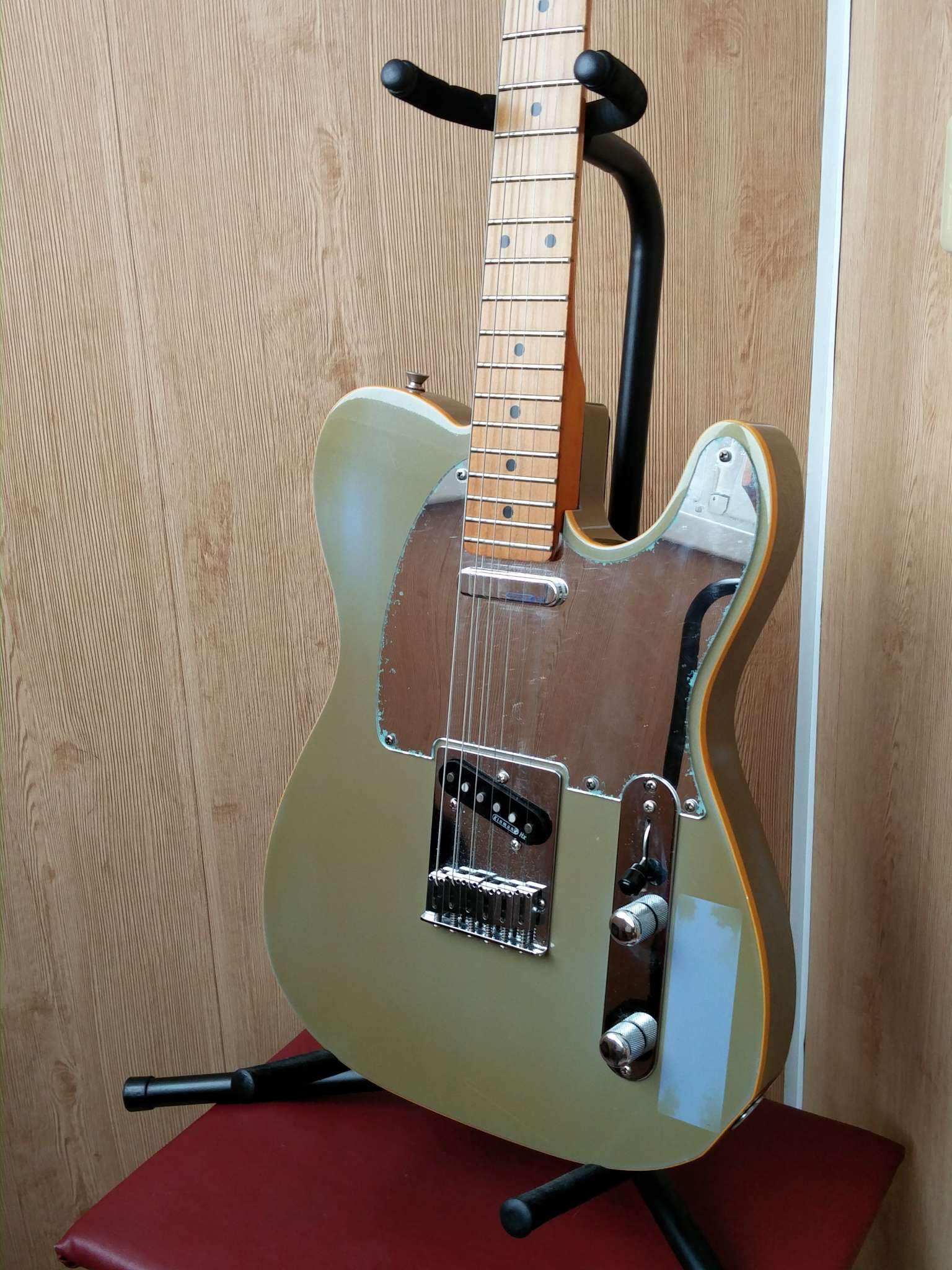Основные спецификации таковы: Дека ольховая из 3-х кусков, гриф клен с ореховой вставкой и кленовой накладкой, лады американские, ровно как в стоке были американские датчики. Был сет датчиков Bill Lawrence Black Label T1&T2 (датчики были сделаны самим Биллом Лоуренсом для Роя Бьюкенена), электроника стандартная, модерновый бридж и вырез под пузо и олдовый 5 винтовой зеркальный пикгард! Только родной датчик в бридже был мертв и туда поставили рельсу и я поменял полностью сет датчиков на Kinman (AVn-60n в нек и Bridge Blaster соответсвенно в бридж) ну и потенциометры новые поставил, хотя родные живы! Родной нековый Т1 звучал просто божественно!!! Это был лучший датчик в неке за всю мою жизнь, но побоялся что он не попрет с Kinman (это моя любимая контора) и я его продал...